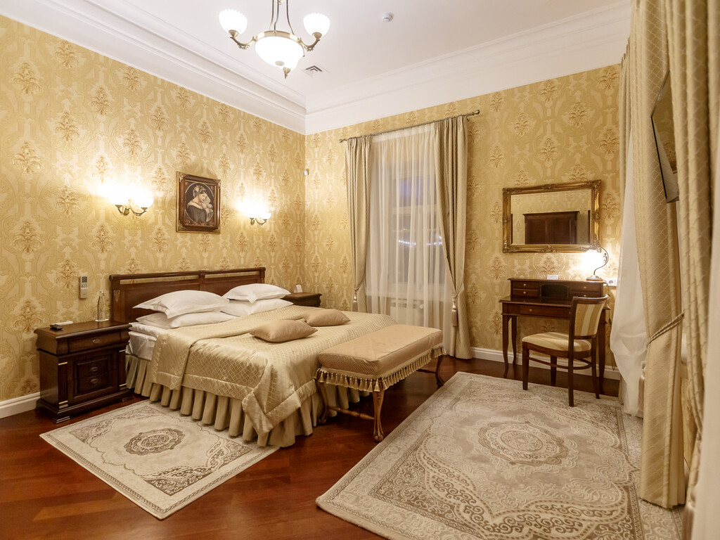 Размещение с собаками мелких пород (до 10 кг) возможно в номерах категории стандарт на 1 этаже и в отдельных номерах в русском подворье (требуется согласование с отделом бронирования).