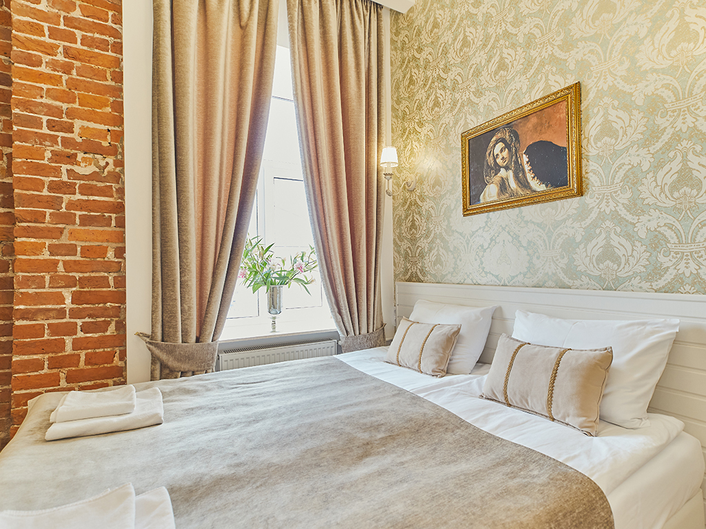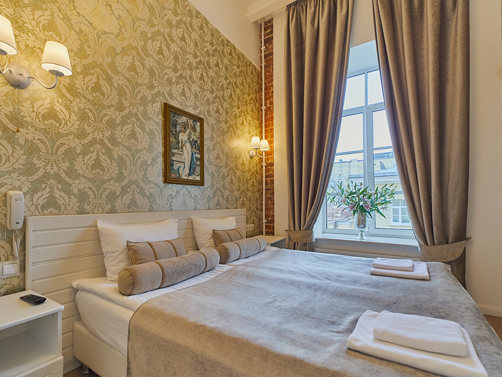 Гостиница расположена в историческом центре Санкт-Петербурга по адресу пр. Невский, дом 32-34, на территории объекта культурного наследия федерального значения «Римско-католический Храм Святой Екатерины». При оформлении интерьеров были сохранены исторические элементы декора, старинная кирпичная кладка и своды. Европейские номера выполнены в классическом петербургском стиле и обеспечивают гостям комфорт, уют и атмосферу стильного дома.