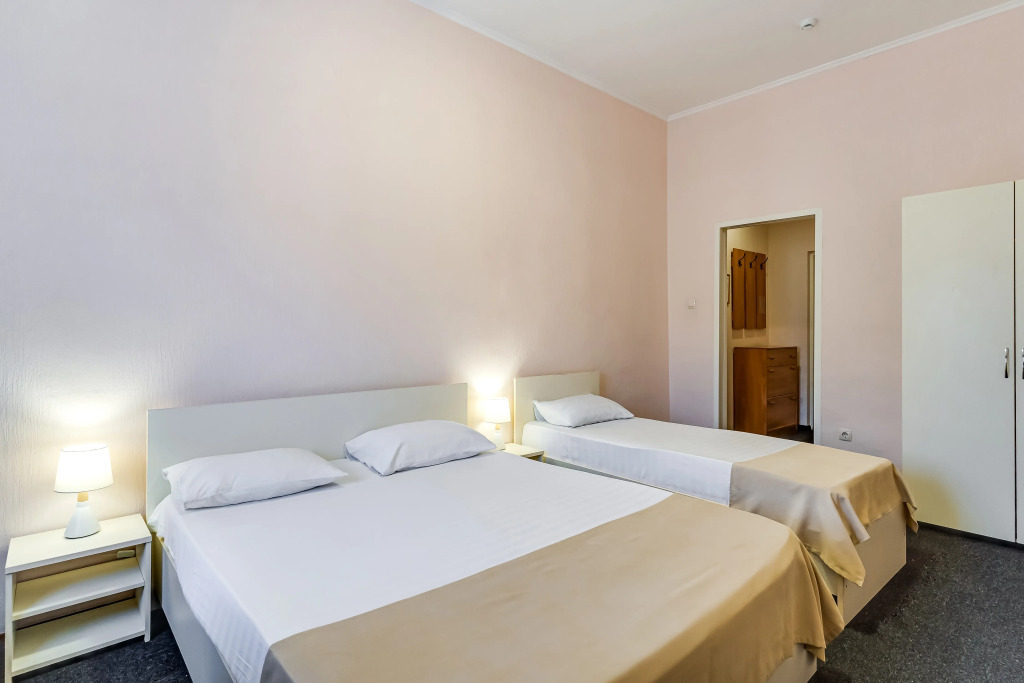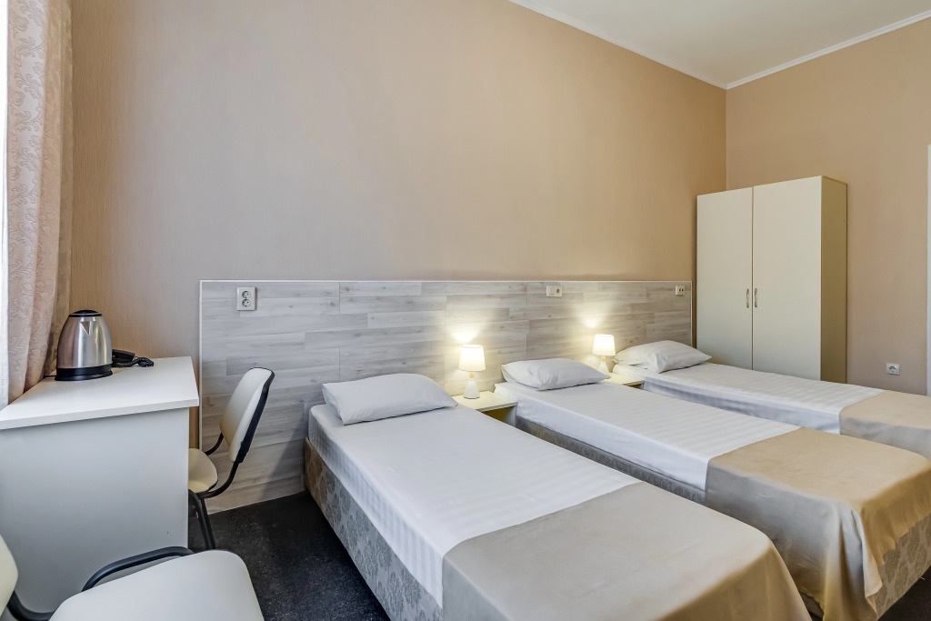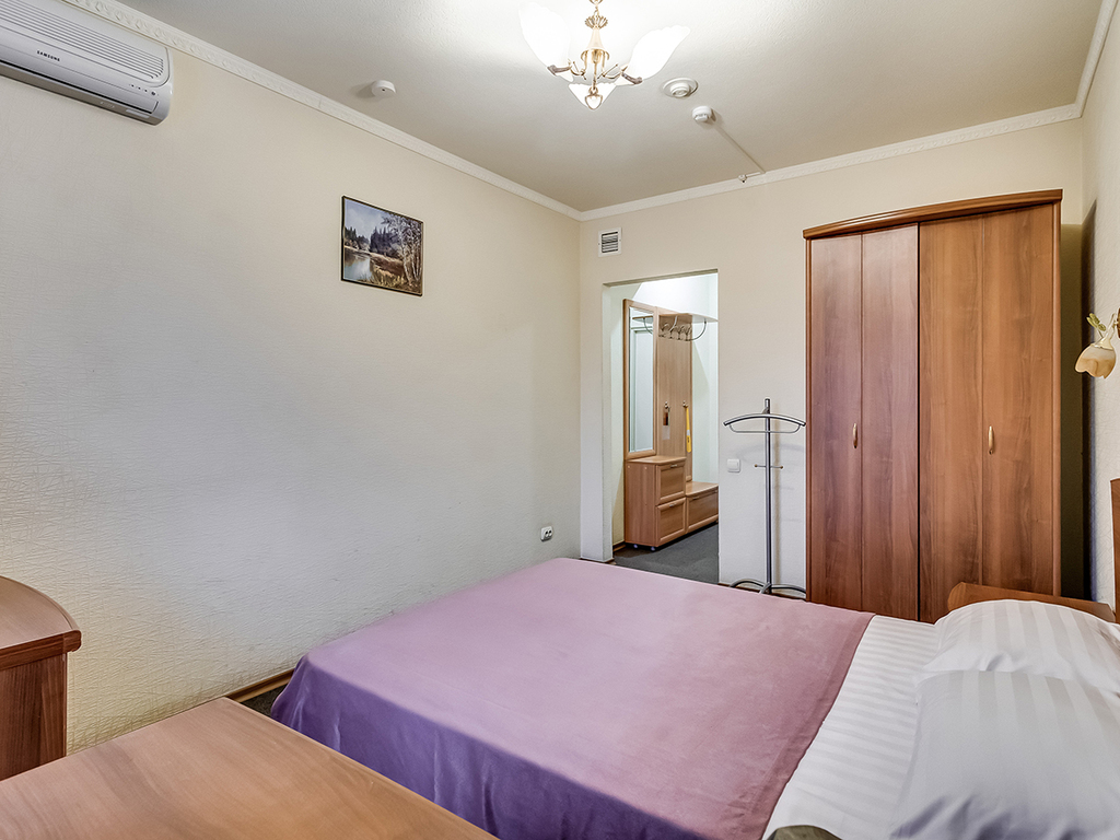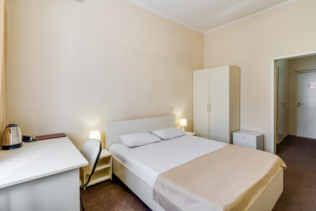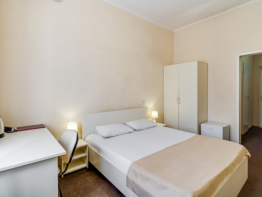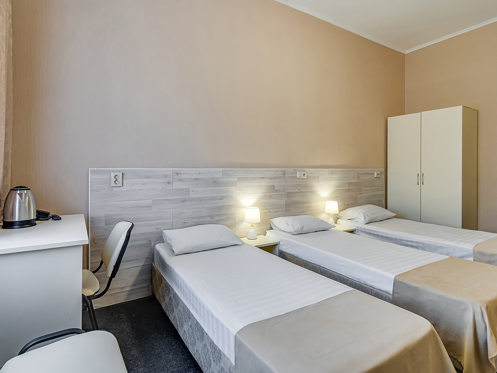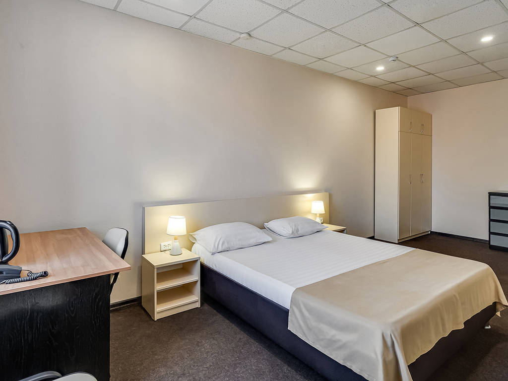 Все номера гостиницы полностью меблированы. В каждом есть кровать, шкаф, письменный стол. Дети до 8 лет заселяются у нас бесплатно, с предоставлением отдельного спального места.
