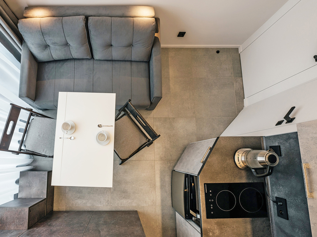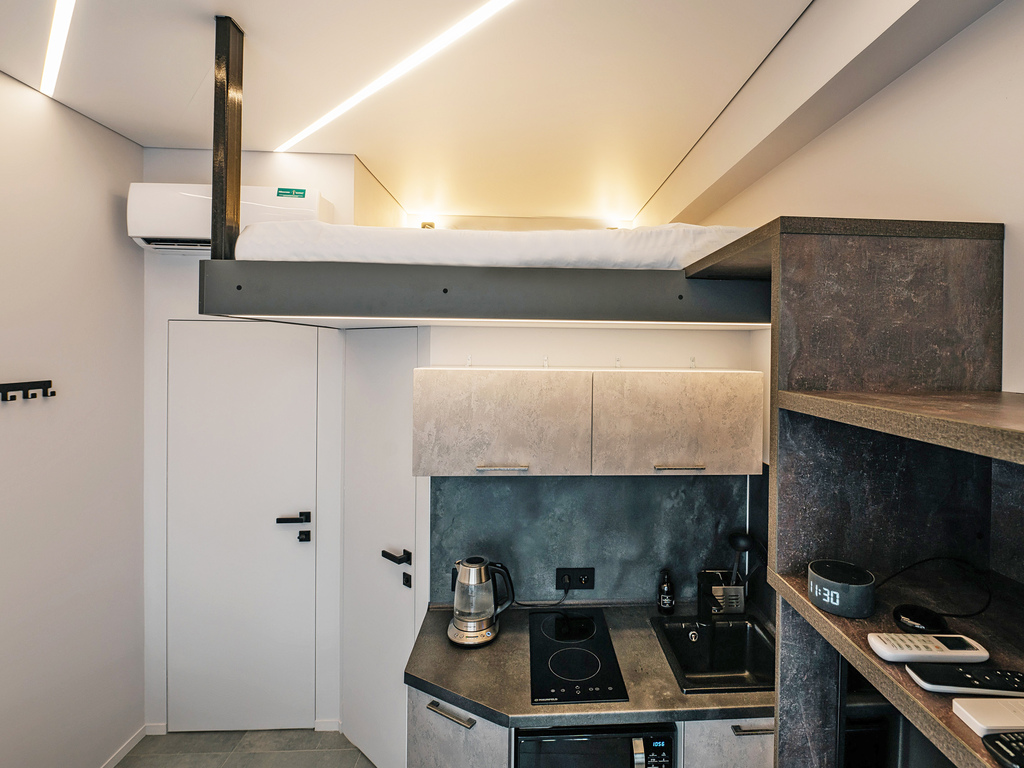 В каждом апартаменте апарт-отеля есть кухня, со всем необходимым оснащением для приготовления пищи.