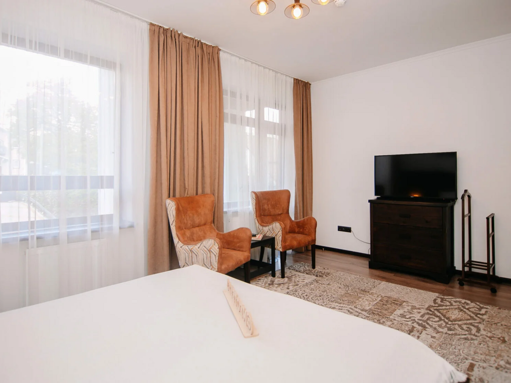 Гости могут бесплатно пользоваться открытым подогреваемым бассейном, кинозалом, общим лаунджем и садом. За отдельную плату доступна аренда сауны и мангальной зоны.