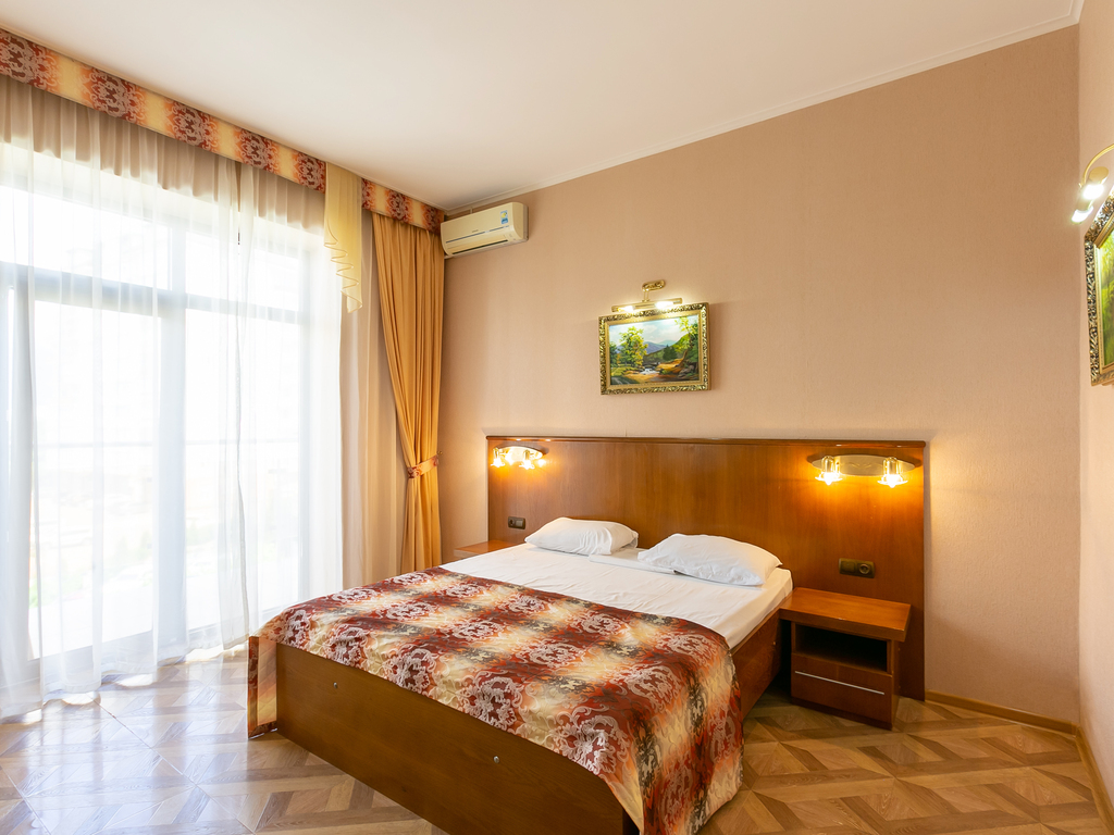 Также все номера отеля оснащены сплит – системами, благодаря которым в апартаментах поддерживается комфортный температурный режим: в изнуряющий летний день - легкая прохлада, а в зимний период - домашнее тепло и уют.
