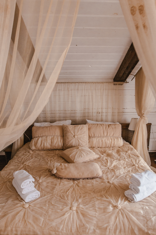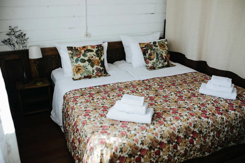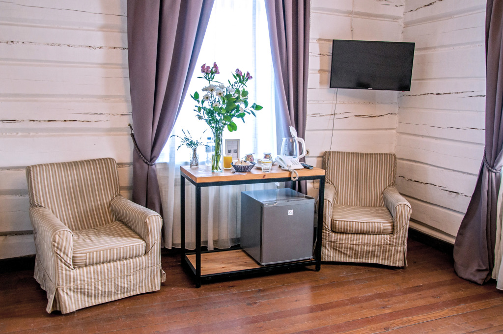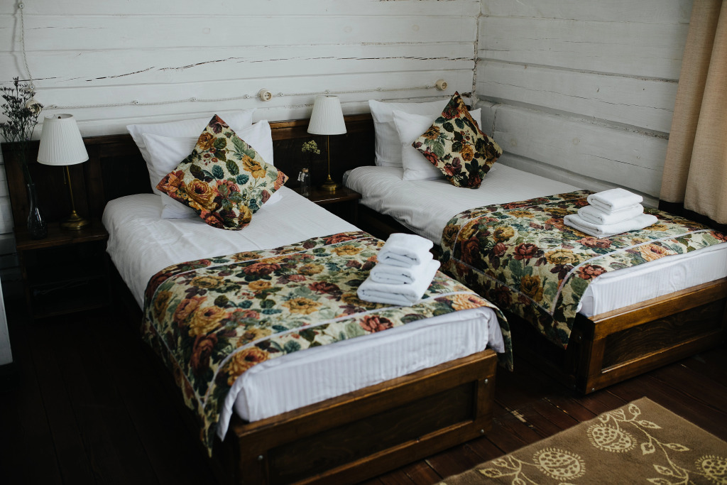 Отель представляет собой деревянное здание.