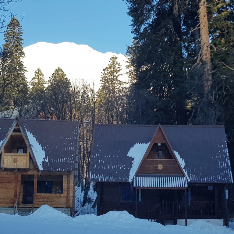 Подходящий вариант для бюджетного отдыха — отель «Алибек» находится среди ущелья, до посёлка Домбай — 5 км.
