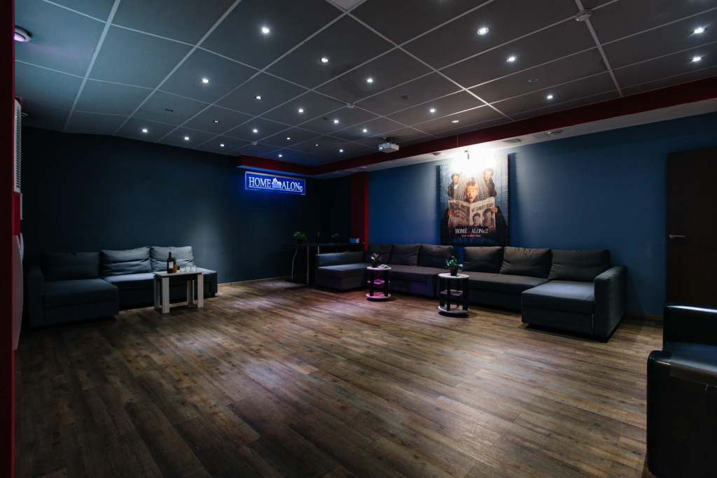 Обеденная зона рассчитана на 15 человек. Фильтрованная вода поступает прямо из под крана. Оборудована отдельная танцевальная комната со светомузыкой и проектором. Есть колонка и микрофон. Игровая зона: можно провести время за игровой приставкой. А для любителей аналоговых развлечений в лофте имеется несколько настольных игр. К услугам гостей фотозона, пледы