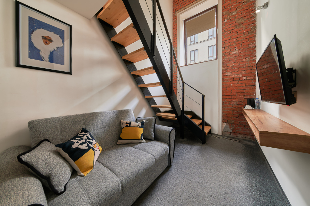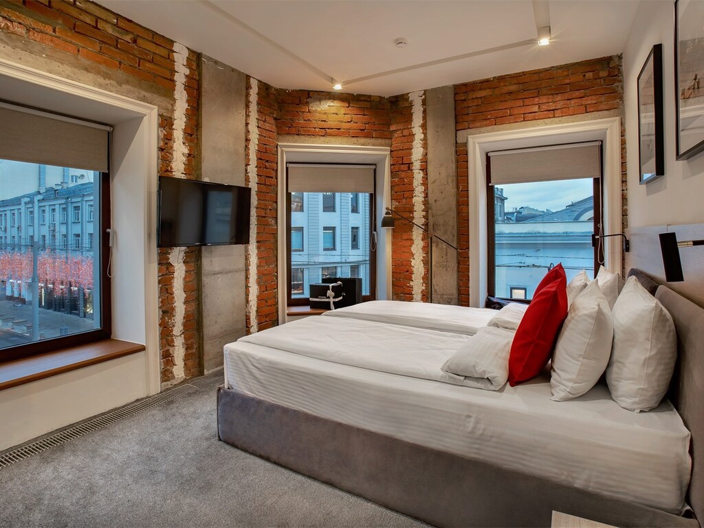 Номера отеля, расположены в историческом центре Столицы смогли собрать в себе идеальный баланс креативных интерьерных решений и технологий. Особой гордость являются двухуровневые номера с видом на одну из самых популярных прогулочных улиц Москвы -