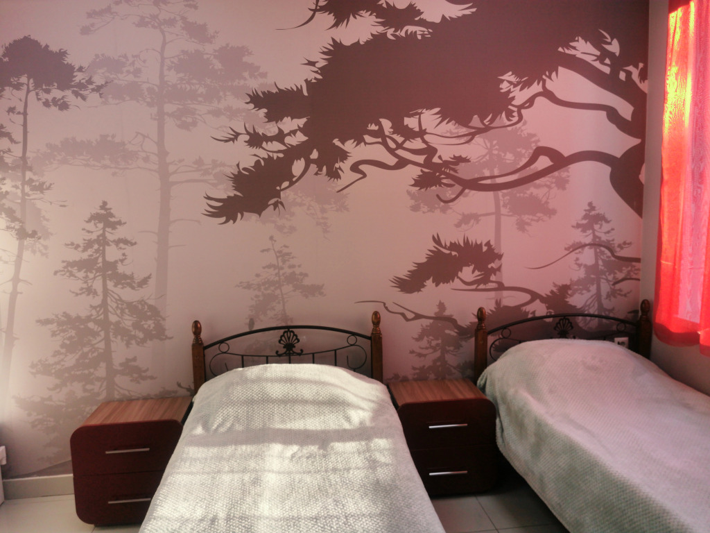Постояльцам предоставляются комнаты оформленные в европейском стиле. Наличие ярких цветовых акцентов создает хорошее настроение и оживляет интерьер. Тут имеется все для комфортного пребывания. После тяжелого дня Вы можете разместиться на удобной, мягкой кровати и расслабиться.