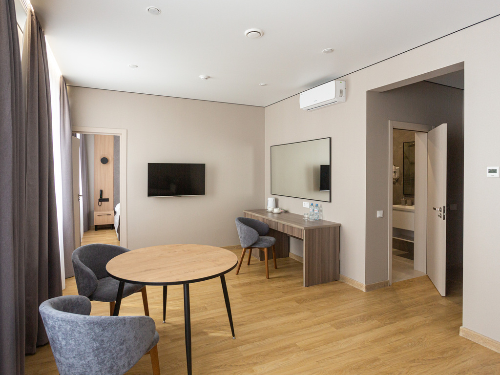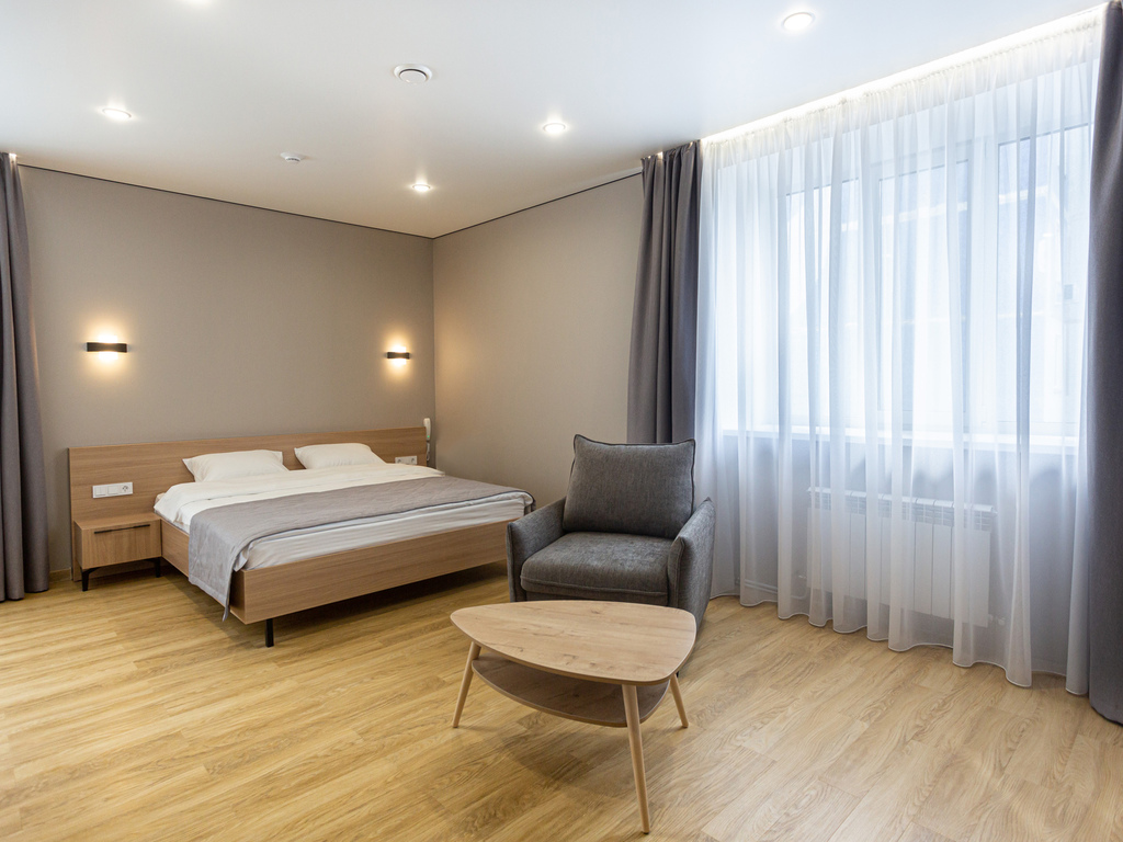 Для вас мы приготовили 24 уютных номера разных категорий, выполненных по дизайн проекту в современном стиле с учетом всех нюансов для вашего комфорта. Мягкое цветовое оформление номеров поможет Вам окунуться в атмосферу расслабленности и покоя.