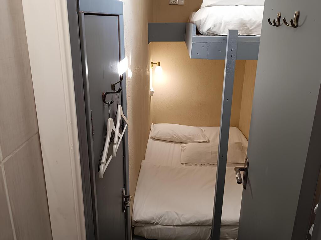 Площадь капсулы с двуспальной двухъярусной кроватью и общей ванной комнатой составляет 3 кв. м.