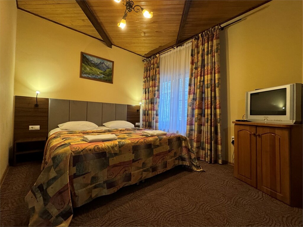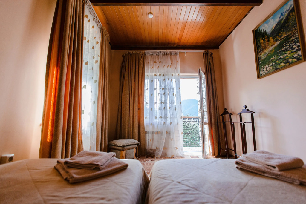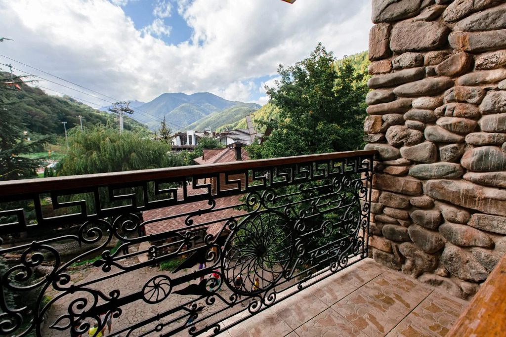 отель очень удобно расположен 5 мин пешком от жд станции и от Альпики. очень вкусные завтраки, атмосферная территория. номер довольно просторный, чистый. с балкона шикарный вид на горы