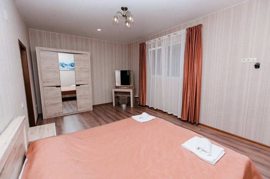 За эти деньги все отлично. Чисто, с балконом, Есть сейф. Много различных вешалок. Хорошее белье.