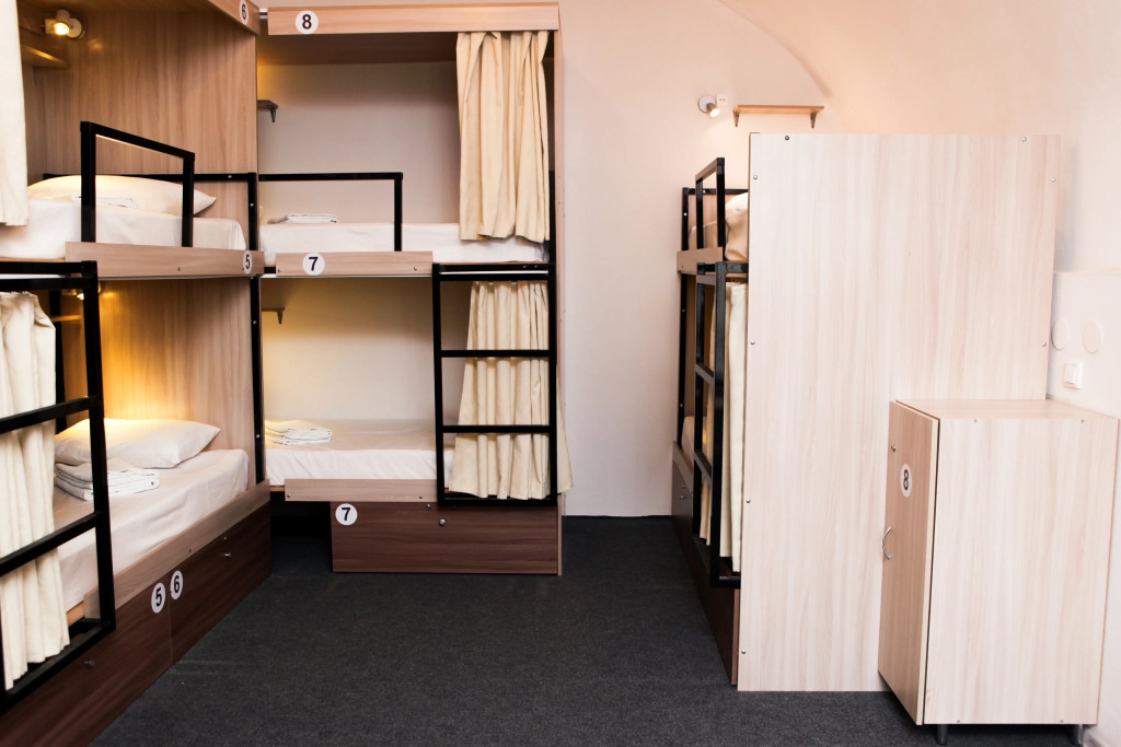 Есть номера на 2-3-4 человека со своим сан/узлом и душевыми; общие номера от 6 до 10 чел.
