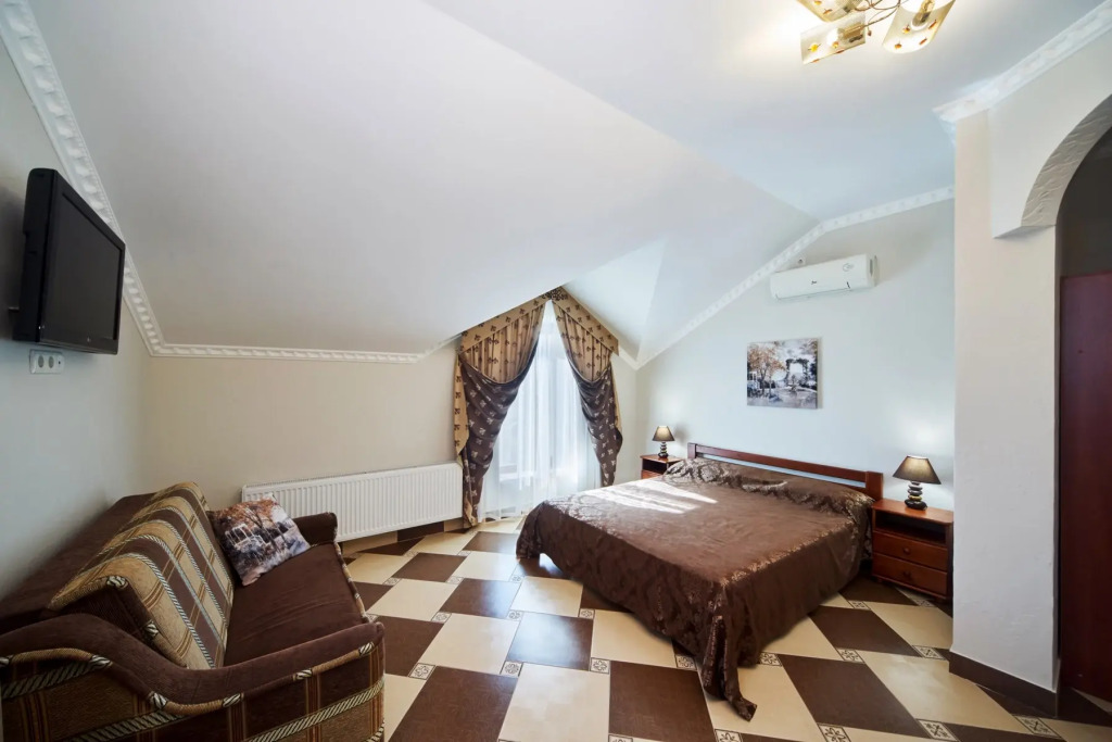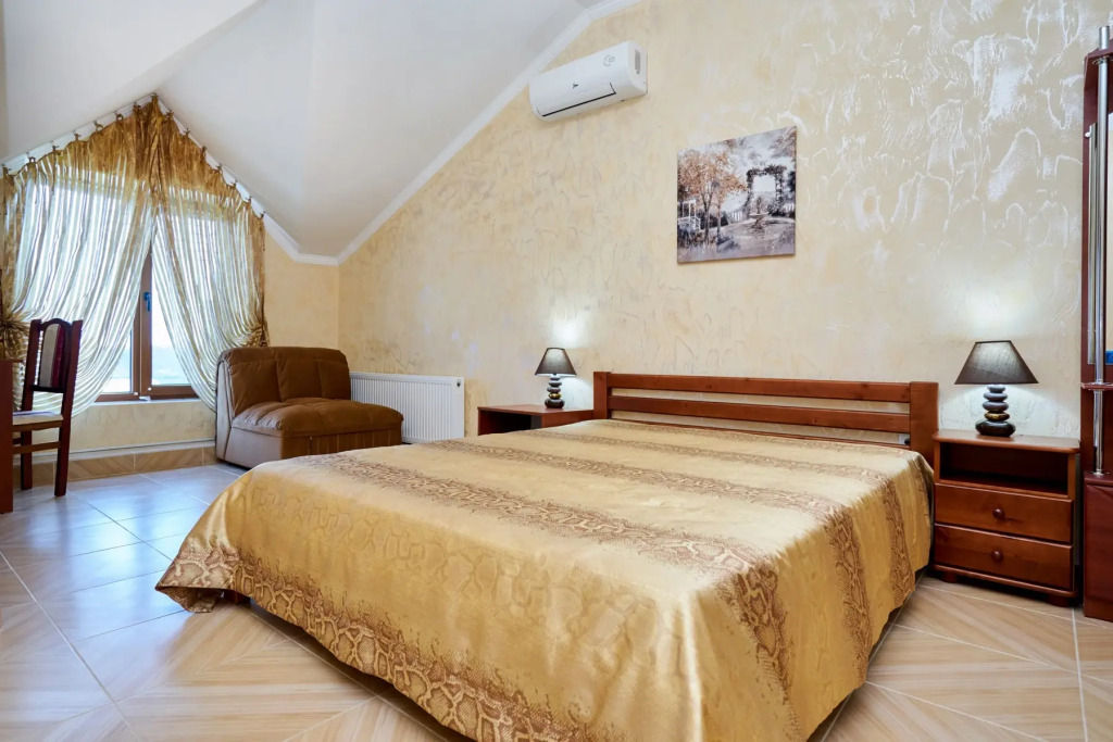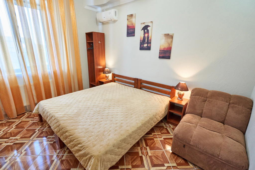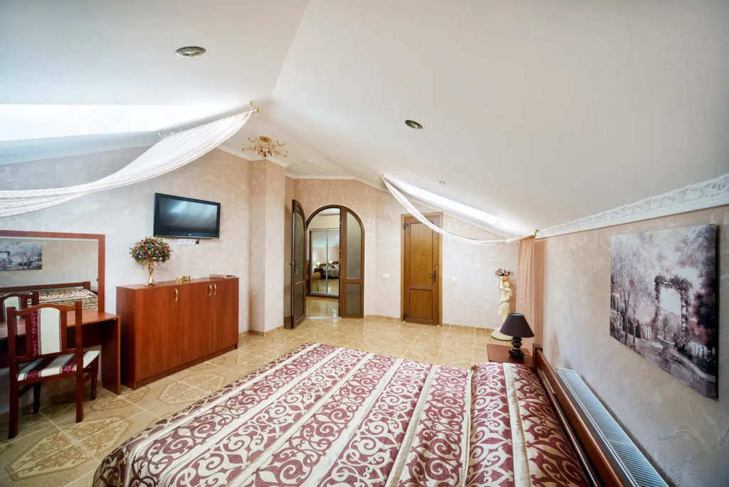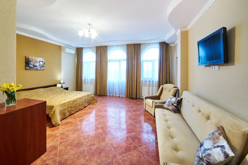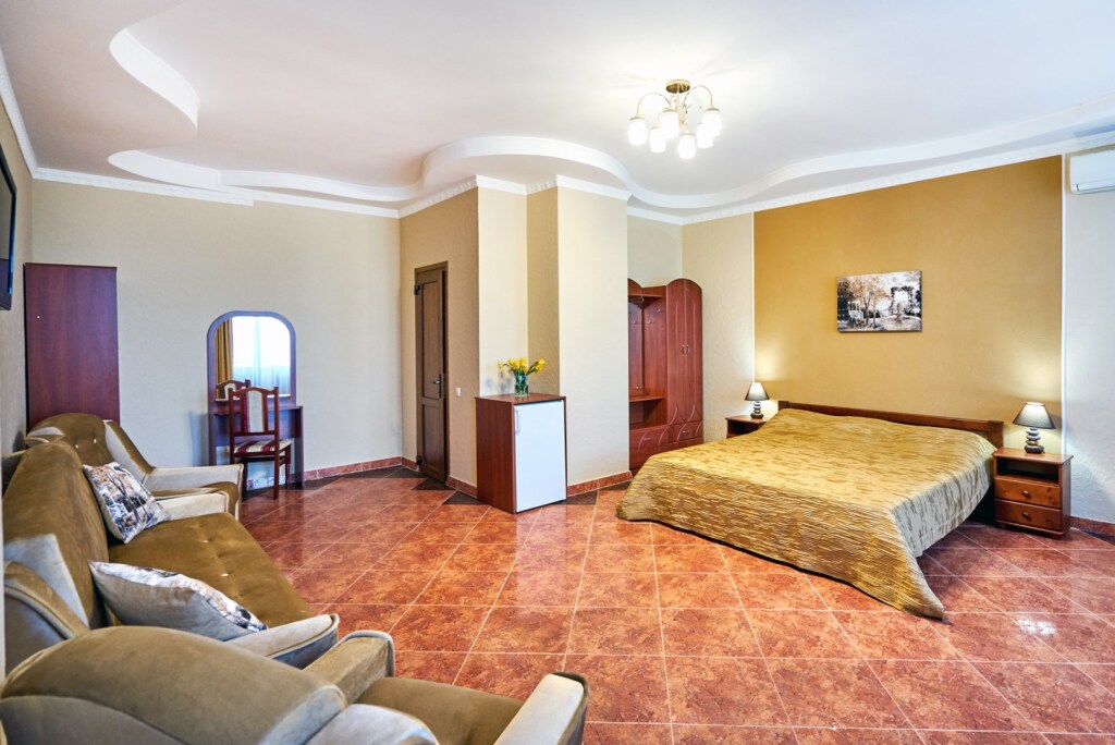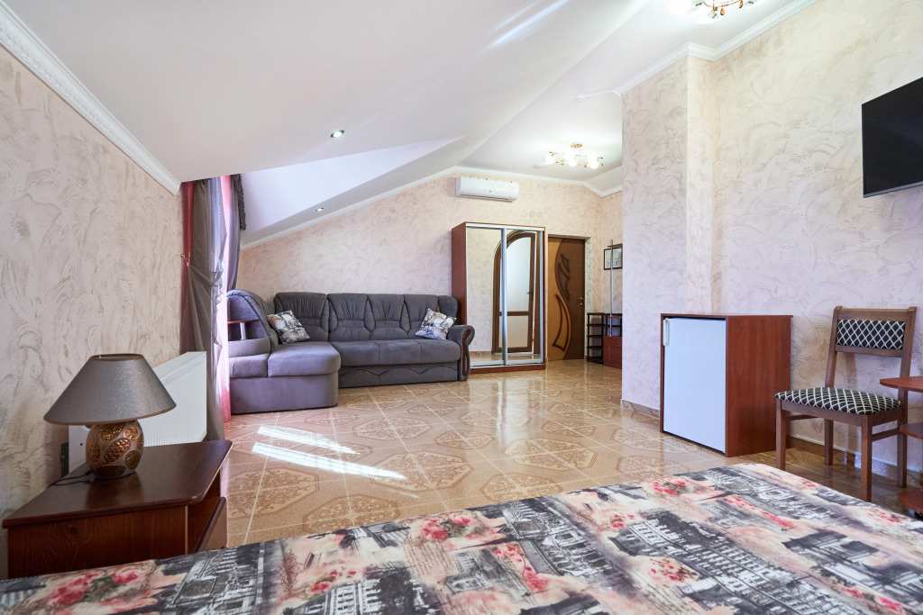 На территории гостевого дома расположены 2 корпуса, 2 летних крытых беседки — чайная зона, кафе и «беседка аниматора», открытый бассейн с подогревом, гидромассажем и раздельными взрослой и детской чашами, столовая, детская площадка, вечерний кинозал, батут, настольный теннис, открытая парковка под видеонаблюдением перед территорией гостевого дома. Для удобства гостей в чайной зоне установлены: микроволновая печь, столовые приборы, электрический чайник, есть круглосуточный доступ к фильтрованной воде.