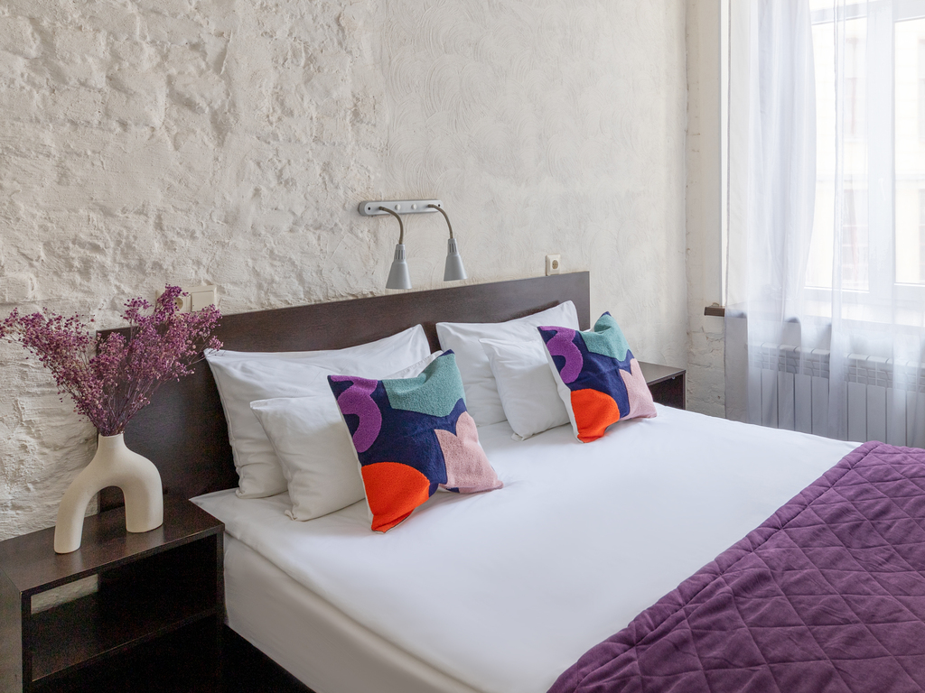 К услугам гостей гостевой дом предлагает 57 современных комнат, оформленных в фирменных ярких тонах. В каждой комнате есть плоский телевизор со спутниковыми каналами, кровати с ортопедическими матрасами, собственная ванная комната с современной сантехникой, душем и туалетно-косметическими принадлежностями, дополнительной шумоизоляцией. Гостевой дом оборудован центральной системой кондиционирования и отопления.