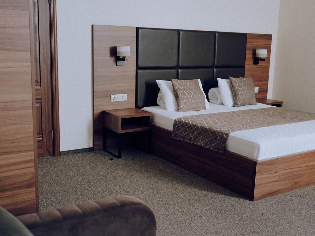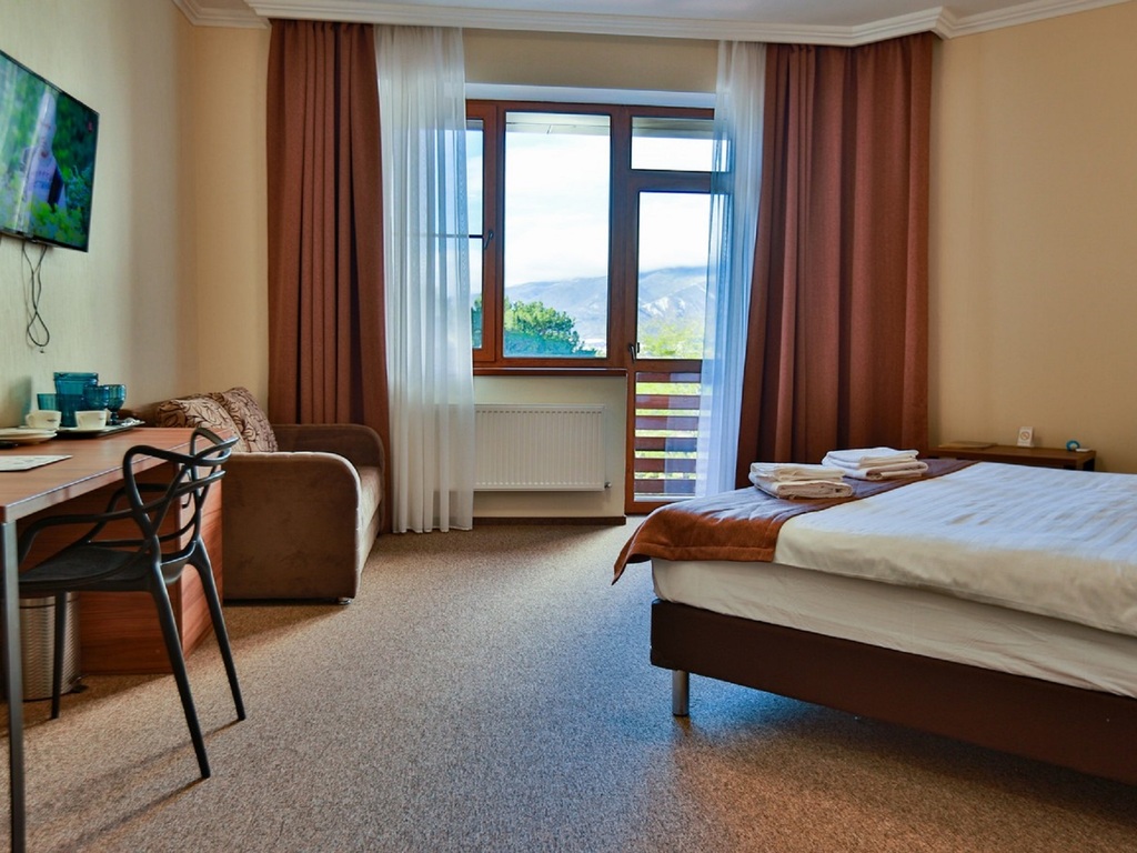 К услугам постояльцев и гостей отеля представлены 18 комфортабельных по современно европейским стандартам номеров, оснащенных удобной мебелью и самым современным техническим оборудованием. Почти все номера имеют выход на балкон, с которых открывается вид Маркотхский хребет и Черное море. В номерах нашего отеля вы будете чувствовать себя как дома, безопасно и уютно.