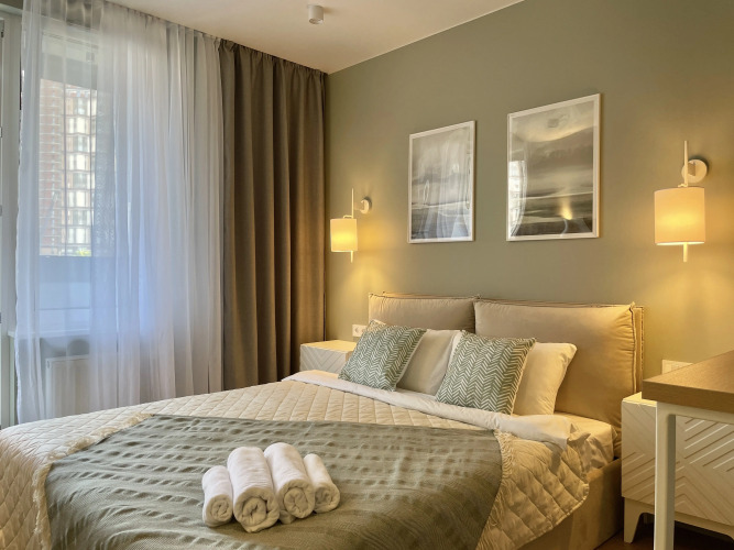 На территории есть парковка во дворе для разргузки багажа, так же в зоне рецепшн есть камера хранения, можно заказать дополнительно клининг-услуги. Так же имеется массажный кабинет, маникюрный салон. Для владельцев автомобилей есть закрытая парковка (платная), большая открытая парковка рядом с гипермаркетом "Перекресток". На парковке расположена автомойка. О расписании и тарифах спортивного комплекса Fitness House можно узнать на сайте этой организации. Но если у Вас есть абонемент в какой-нибудь из клубов Fitness House, Ваше посещение будет без дополнительной оплаты. Для удобства гостей предоставляется следующее: холодильник, стиральная машина, варочная поверхность, посудомоечная машина, духовка, СВЧ-печь, чайник и кухонные принадлежности. Кроме того, гостям доступны: душевая кабина или ванная, постельное бельё, полотенца, утюг, фен. В отдельных апартаментах имеется рабочее место. В апартаментах доступен Wi-Fi. Наполнение апартаментов может быть изменено без предупреждения. Необходимо внести залог. Стоимость: 3000.00 RUB за номер. Залог мы возвращаем после финальной уборки. Оплата за финальную уборку оплачивается отдельно и составляет 900 RUB за студию, 1100 RUB за квартиру. Эта сумма оплачивается один раз. За проживание более двух недель сумма оплаты за финальную уборку может отличаться. Менеджеры по бронированию работают не круглосуточно. В случае заезда после 21:00, необходимо заранее связаться с отелем и получить инструкции по заселению. Контактная информация указана в подтверждении бронирования.