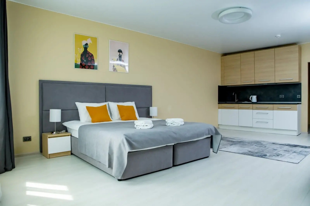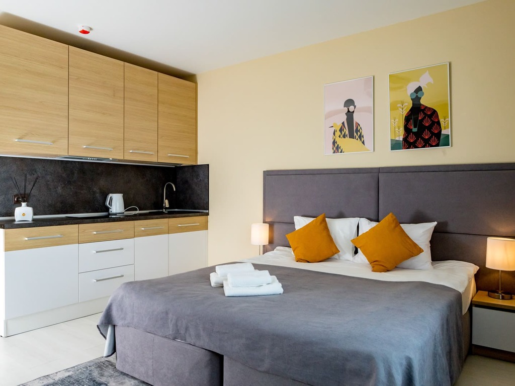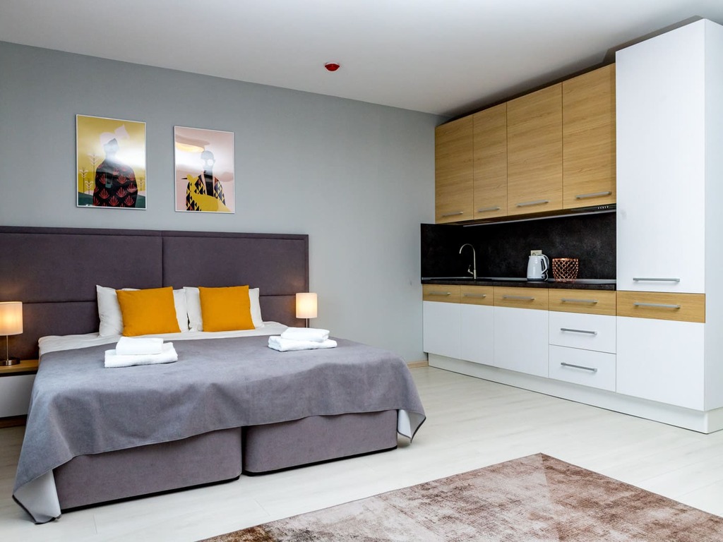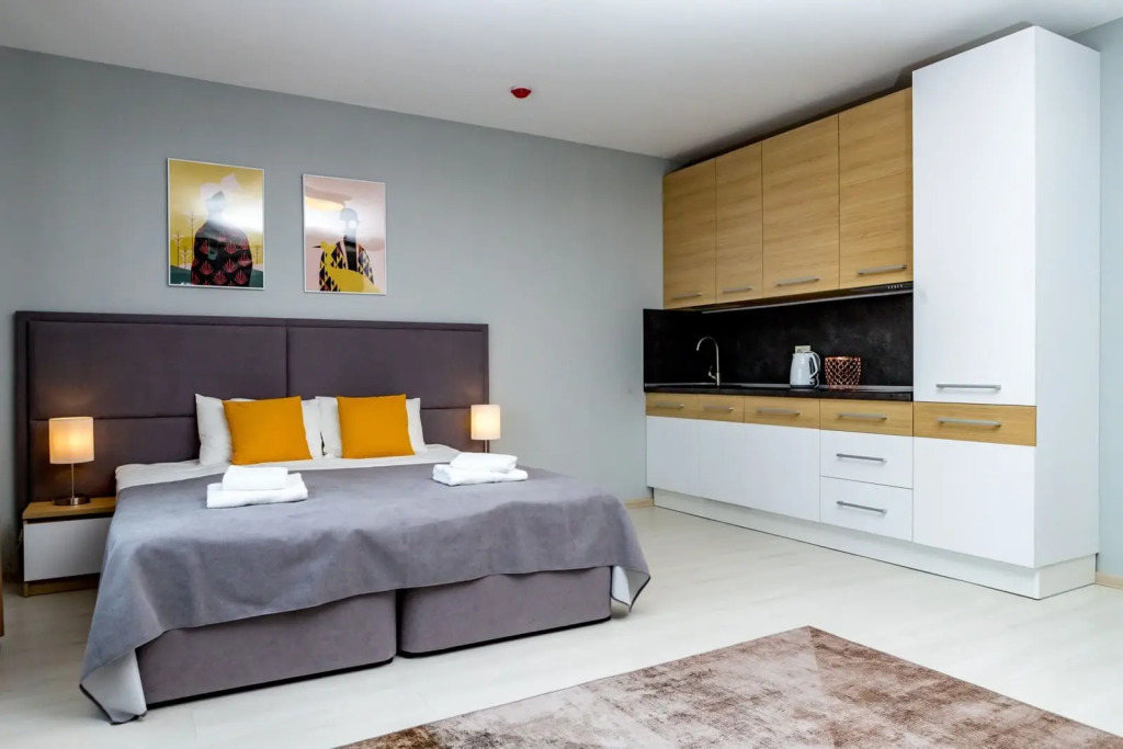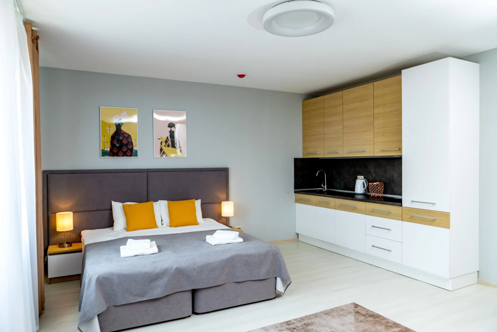 Апарт отель представлен в разных категорий номеров, рассчитаны для проживания от 1 до 5 человек. Просторные комнаты оформлены в спокойной цветовой гамме с яркими акцентами. В каждых представленных апартаментах есть зона кухни с современной техникой и мебелью. Гостям предоставляются: кабельное телевидение, Wi-Fi. Оснащённая кухня: электроплита, СВЧ-печь, электрический чайник, посудомоечная машина, стиральная машина, а также полотенца, халаты, тапочки , косметические принадлежности.