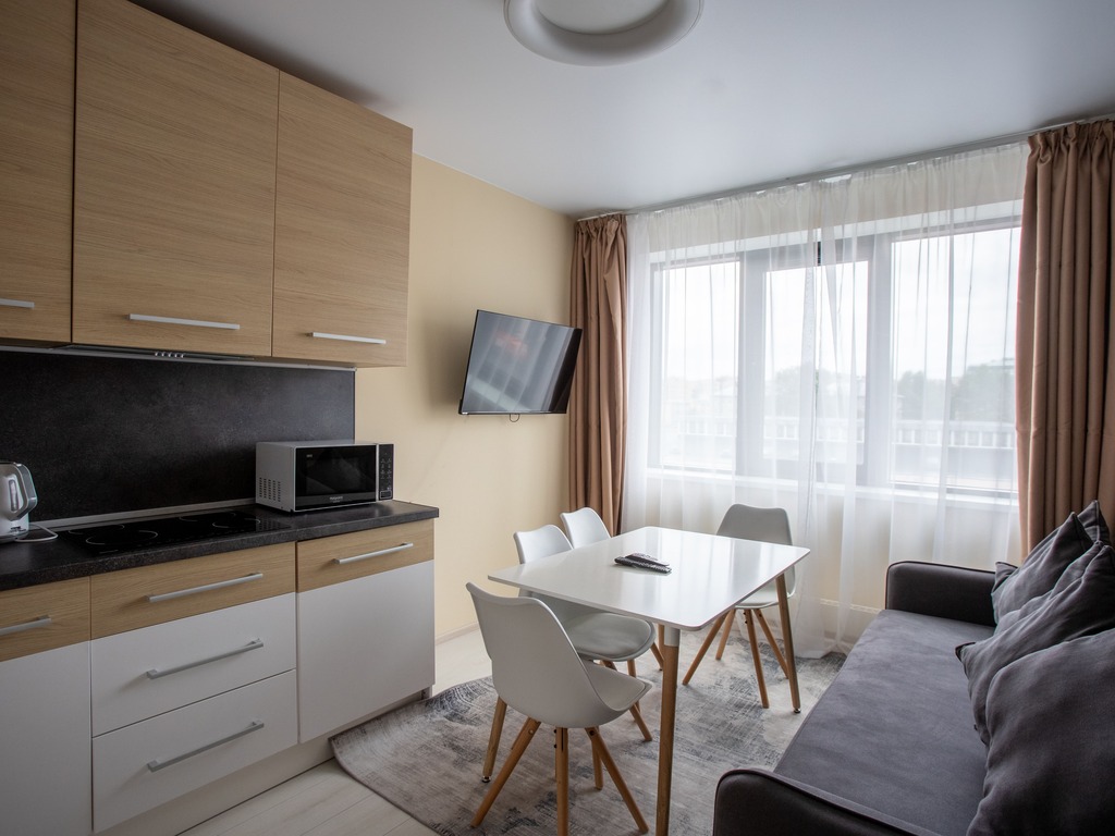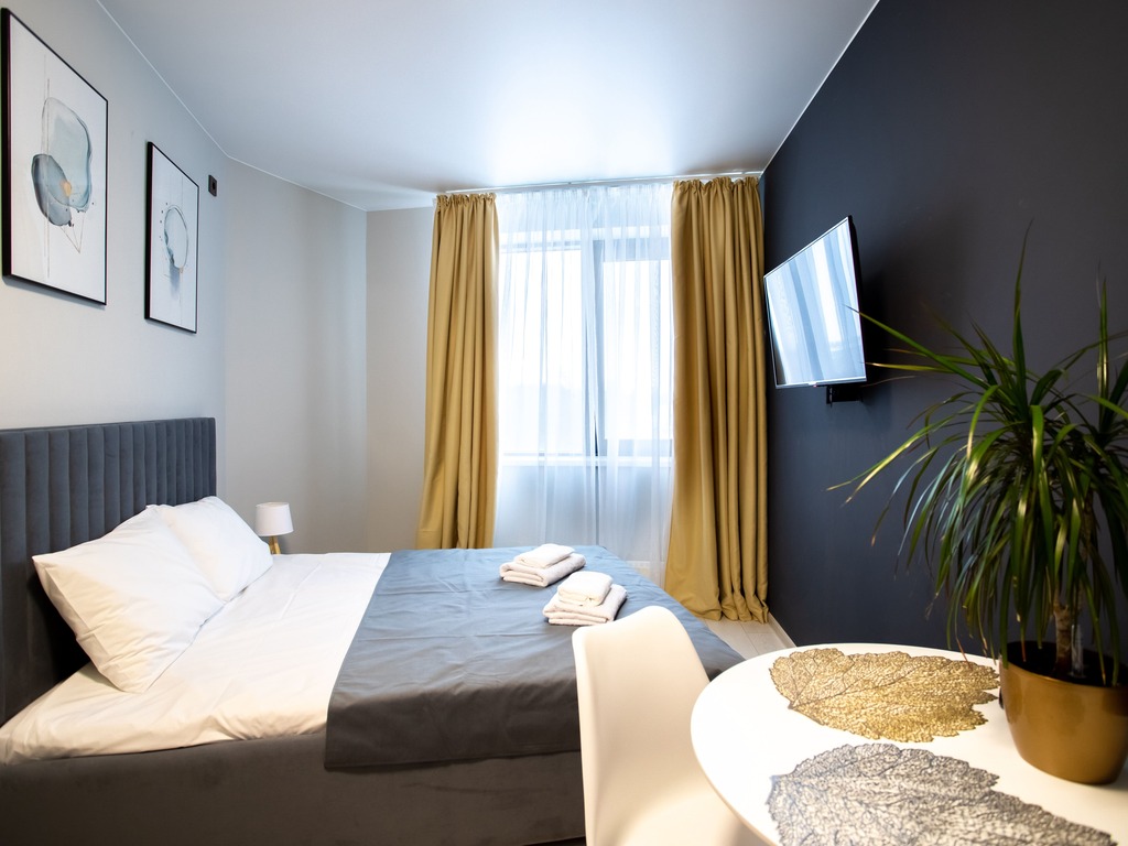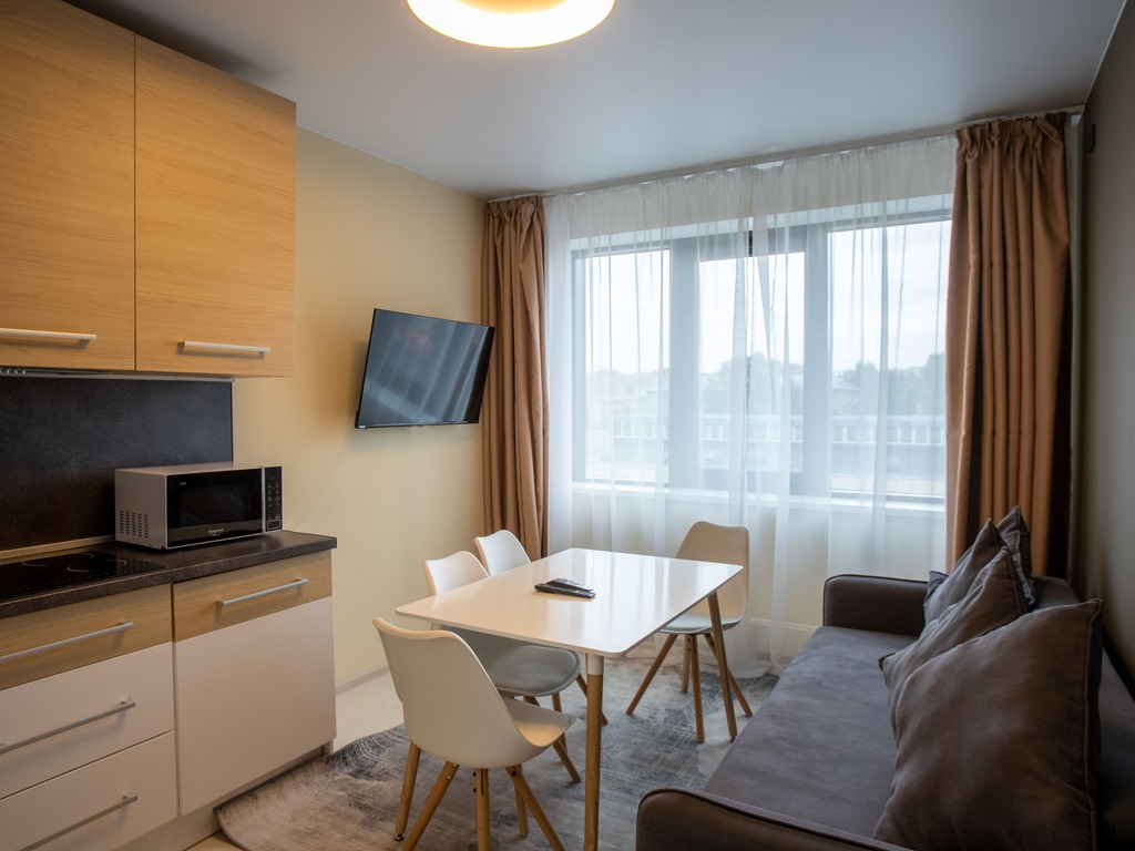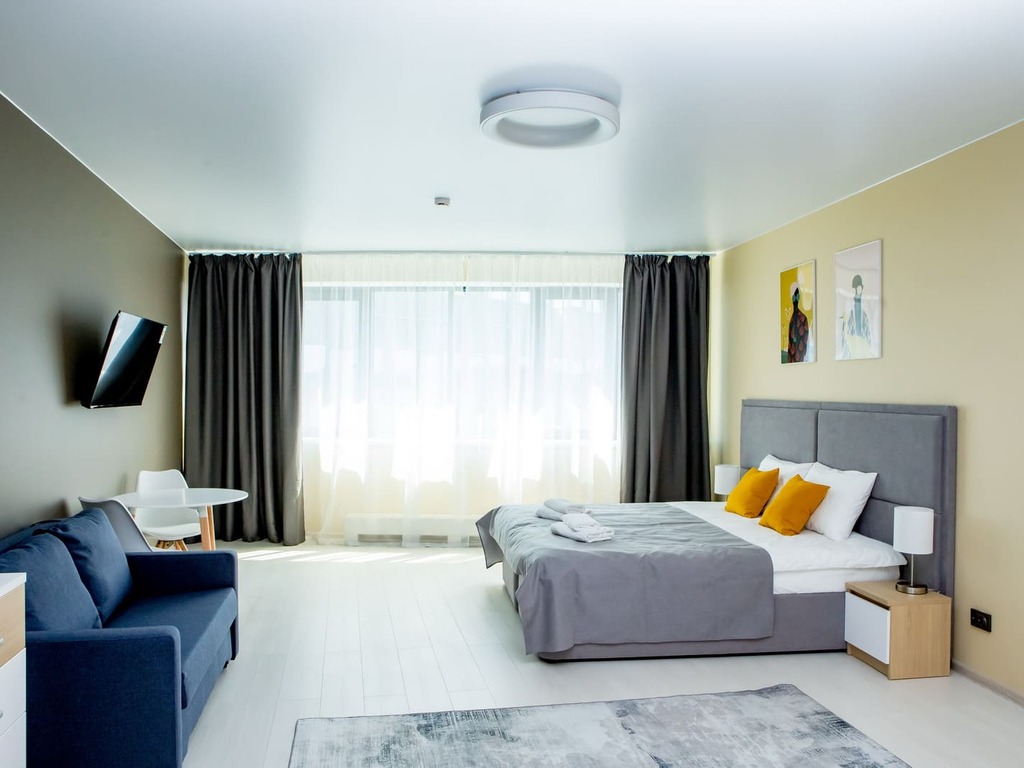 Апарт отель представлен в разных категорий номеров, рассчитаны для проживания от 1 до 5 человек. Просторные комнаты оформлены в спокойной цветовой гамме с яркими акцентами. В каждых представленных апартаментах есть зона кухни с современной техникой и мебелью. Гостям предоставляются: кабельное телевидение, Wi-Fi. Оснащённая кухня: электроплита, СВЧ-печь, электрический чайник, посудомоечная машина, стиральная машина, а также полотенца, халаты, тапочки , косметические принадлежности.