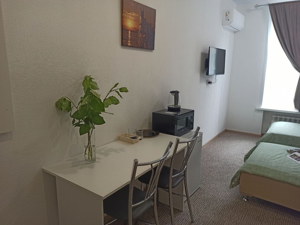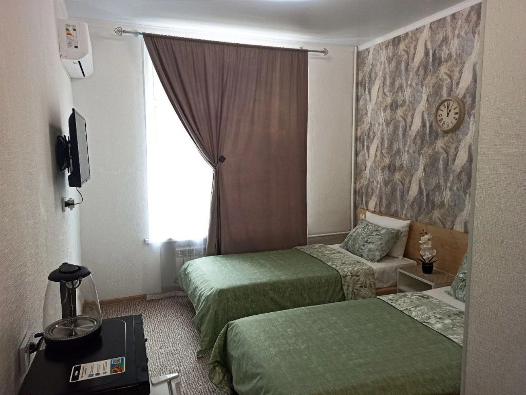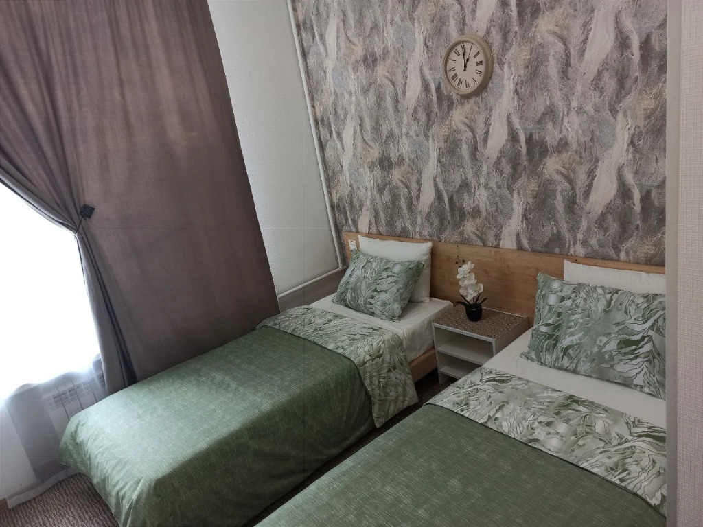 К услугам гостей отель предлагает уютные номера с новым ремонтом, интерьер выполнен в тёплых светлых тонах. В нашем отеле 19 номеров различной категории. Все номера оснащены стеклопакетами и кондиционерами, имеют отдельную туалетную комнату с душевой кабиной и феном. В номерах к услугам наших гостей холодильник, микроволновая печь, чайник, телевизор (выход в Интернет в каждом номере бесплатно -Wi-Fi) .При желании в стоимость проживания можно включить завтраки. Гостеприимный персонал, спокойная атмосфера, выгодное месторасположение сделают Ваш отдых и деловую поездку максимально комфортными и приятными.