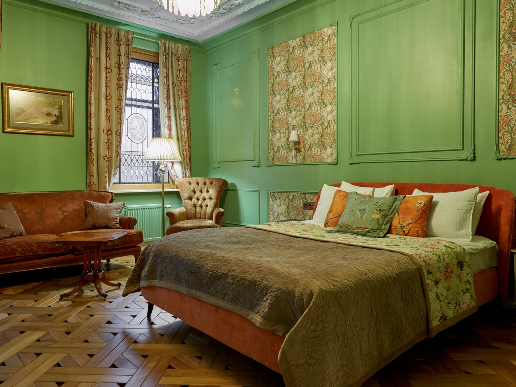 В отеле представлены номера площадью от 40 м² с оригинальным дизайном, качественными отделочными материалами и антикварной мебелью ручной работы. В каждом номере установлена европейская сантехника, а все детали тщательно продуманы командой отеля.