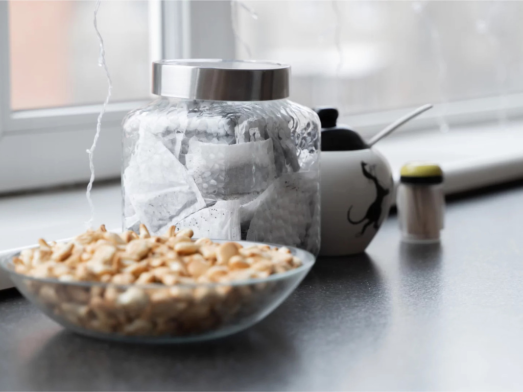 Общая кухня оборудована для самостоятельного приготовления пищи с панорамным видом на город.