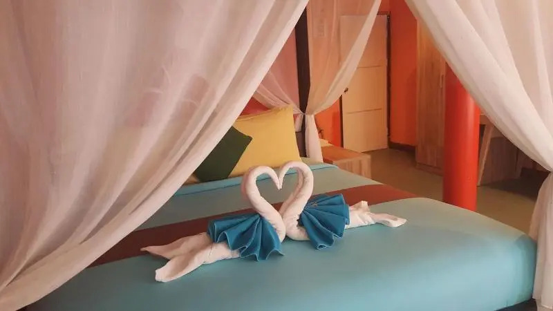 Жили в домике №10, там очень тихо. Расположен выше по острову. До него пешком минут 5-7. Гостям отеля можно пользоваться всеми зонами отдыха. Где расположен ресепшн есть интересные лаундж зоны (столики, гамаки и т. д.). Вид на море, пирс. Каждый вечер приходили туда.