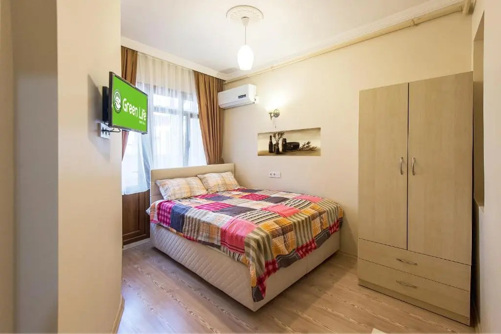 Понравилось расположение, не сильно проезжая часть, в номере чисто и не шумно, рядом небольшой парк с детской площадкой, так же рядом есть заведение с низкими ценами и вкусной едой. В отеле есть красивая панорама. Очень приветливые владельцы, это их семейный бизнес. Мы были зимой поэтому в помещениях где нет батарей холодновато, но в месте где спишь тепло, есть горячая батарея и кондиционер если вам не достаточно тепло. Мы были когда на улице был снег. Рядом много достопримечательностей и рынки. Мы ходили везде пешком. Этот номер не люкс с точки зрения если вы хотите видеть супер картинку, это однокомнатная квартира, где все аккуратно и для проживание есть все необходимое и главное чисто. Цена отличная, на фоне всех остальных отелей в этом районе, по нашему мнению это лучший вариант. Помогли занести вещи, помогли с трансфером по хорошей цене. Владелец хорошо говорит на английском. Мы остались очень довольны. Обязательно приедем весной или осенью когда на улице будет теплее.