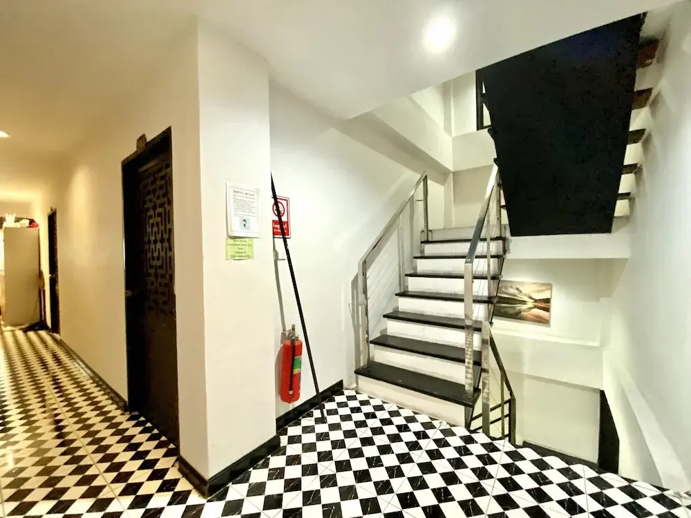 Ужасный отель, не ездите туда. Старый отель, затлый запах в номере. Окон нет, точнее есть но не открываются и вид не далеко перспективный (см фото). Кондиционер работает, не не охлаждает, постель грязная в помаде, в песке. Когда заезжали ночью, менеджер не знал как исправить данную ситуацию тк он не умеет менять постельное. В итоге плюнули, поменяли сами, ночь, с дороги, хотели спать. Самое интересно началось позже. Конденсат с кондиционеров других номеров капает на металлическую жестянку, не прекращвясь слышен шум капающей воды и этой жестянку, вверху на крыше также какой лист от ветра постоянно шабарчал. Слышно малейший шум, было чувство что весь Патонг находится в твоей комнате. Рядом стройка и поэтому с 8 утра начинают долбить перфоратор, работать болгарки и стучать молотки под весёлые крики тайских рабочих. Двери и сейф заслуживают отдельного внимания как и сан узел узел. Единственный плюс это расположение в центре и рядом с пляжем.