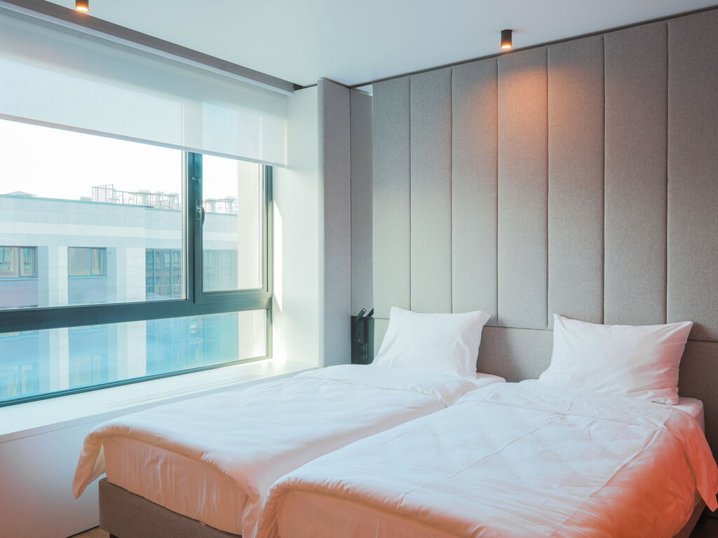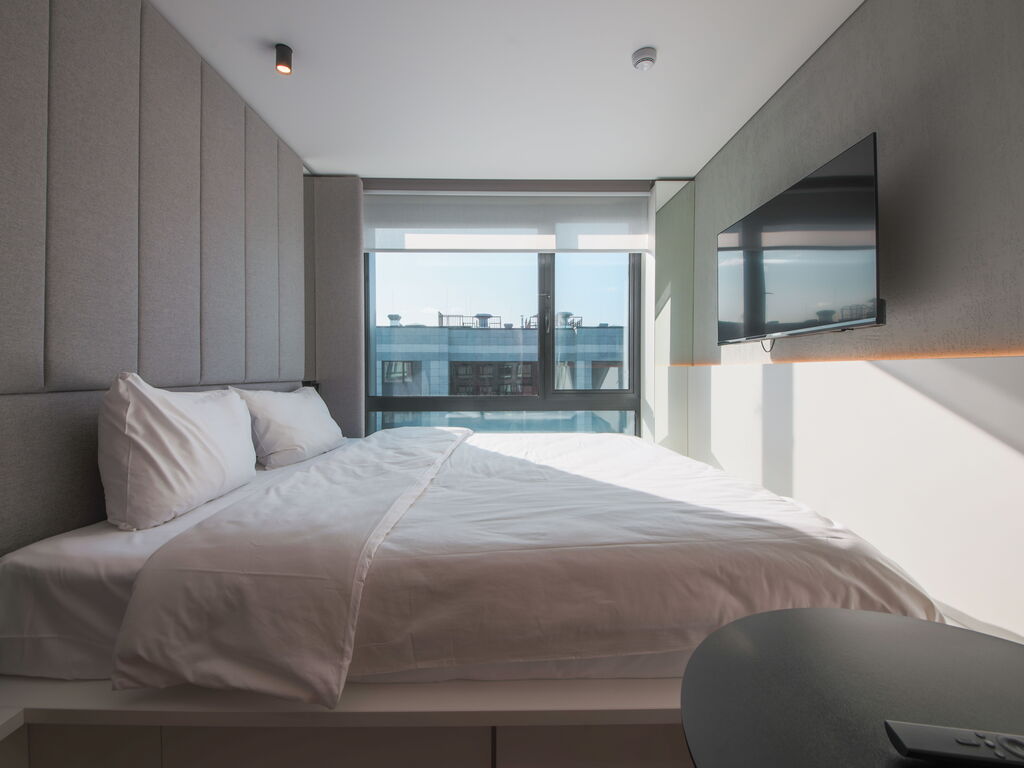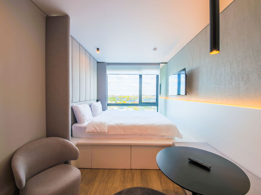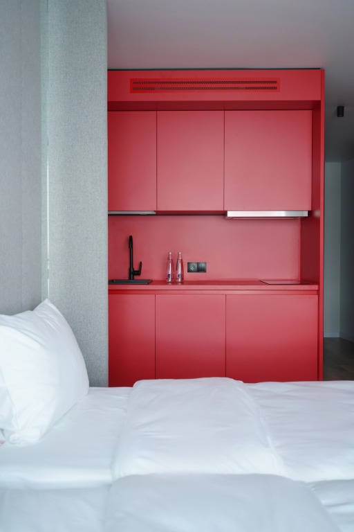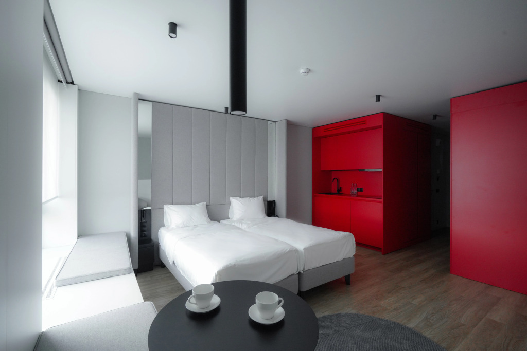 Несмотря на компактную площадь, в номерах есть все необходимое: кухонная зона с холодильником, микроволновкой, электрическим чайником, плитой, посудой и кухонными принадлежностями; панорамные окна; кровать с ортопедическим матрасом; душевая кабина с тропическим душем; махровые полотенца и косметические принадлежности.