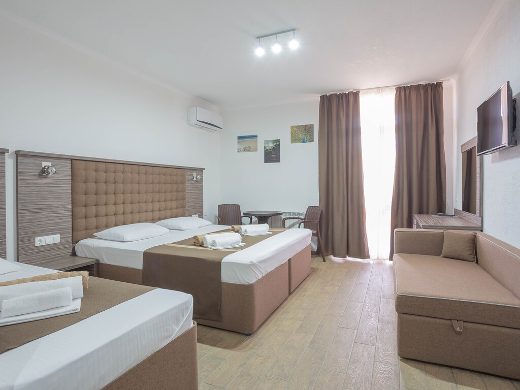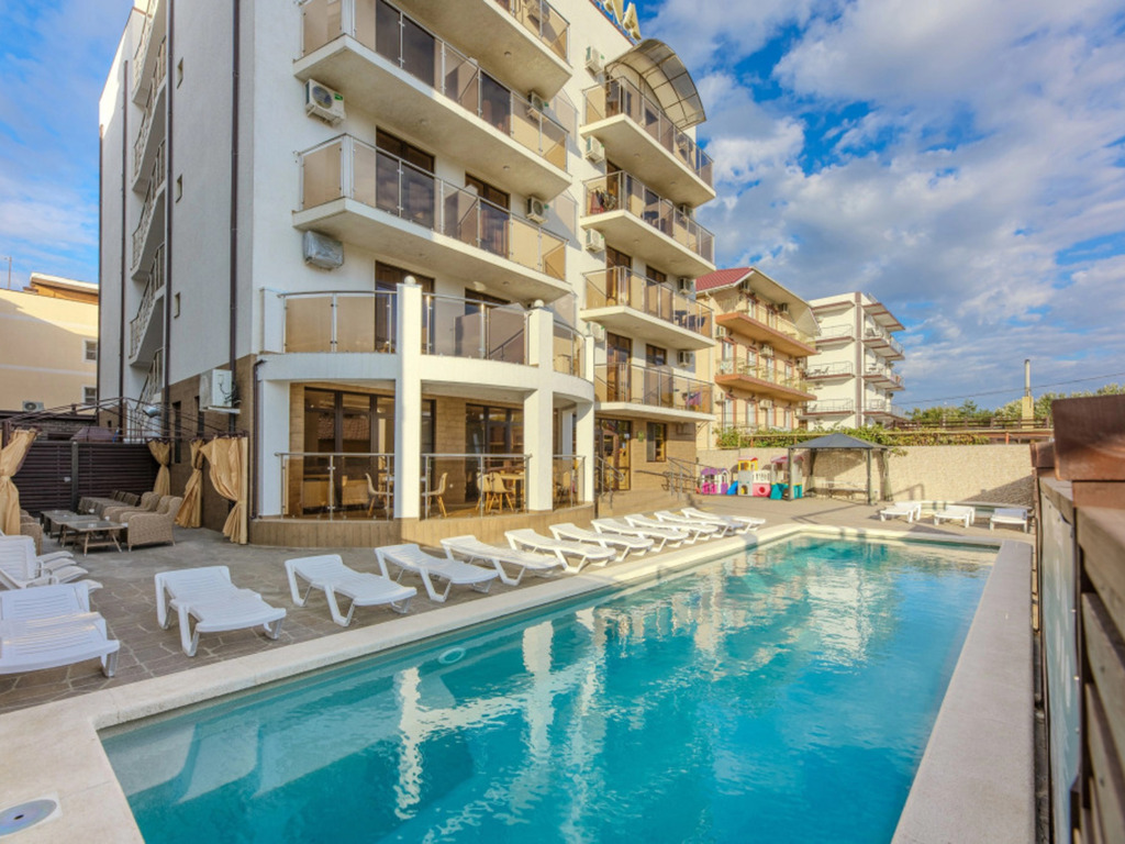 Уютный отель расположился на первой береговой линии поселка Витязево (Анапа). В пешей доступности от отеля есть все, что нужно для семейного отдыха: аквапарк, дельфинарий, парк аттракционов, кафе и рестораны.