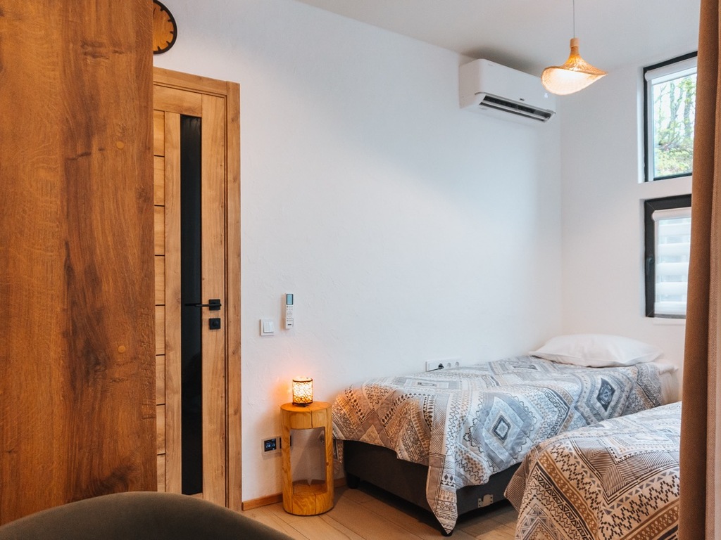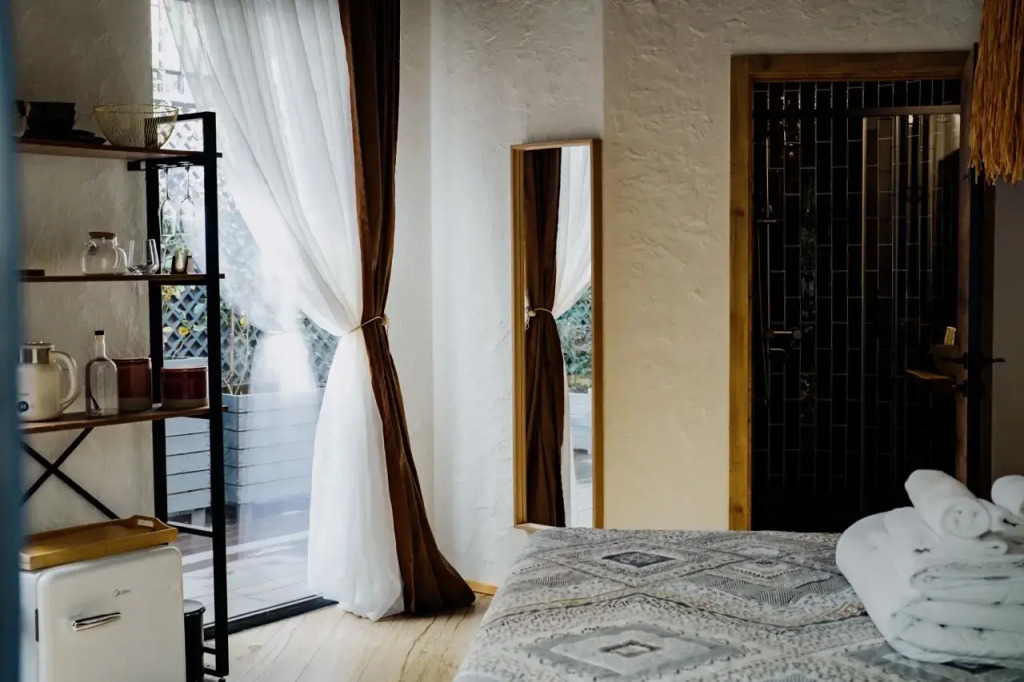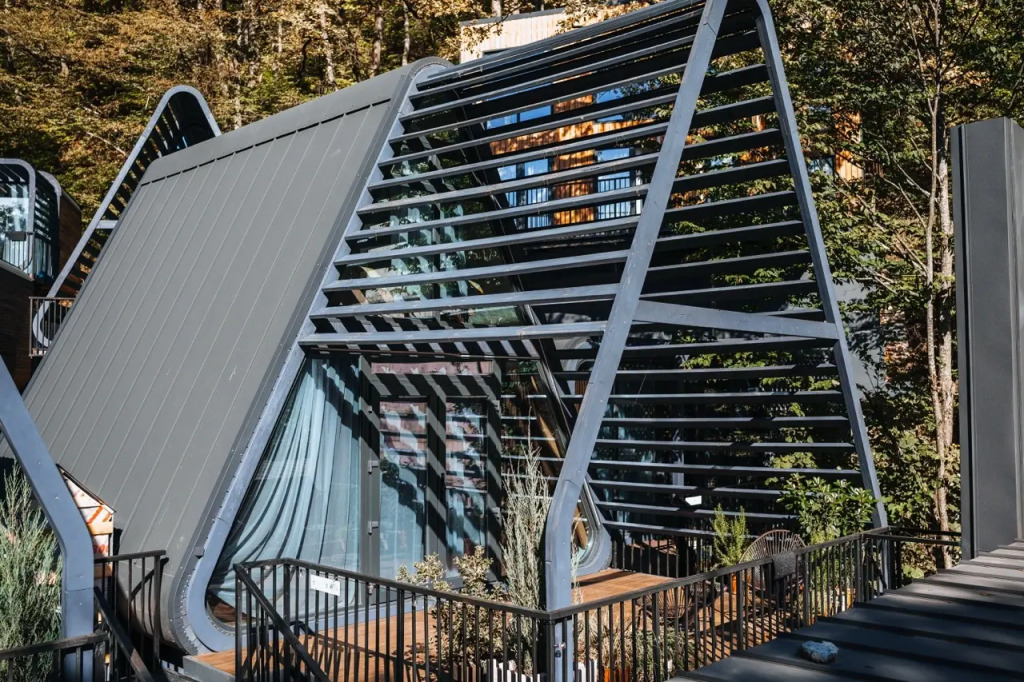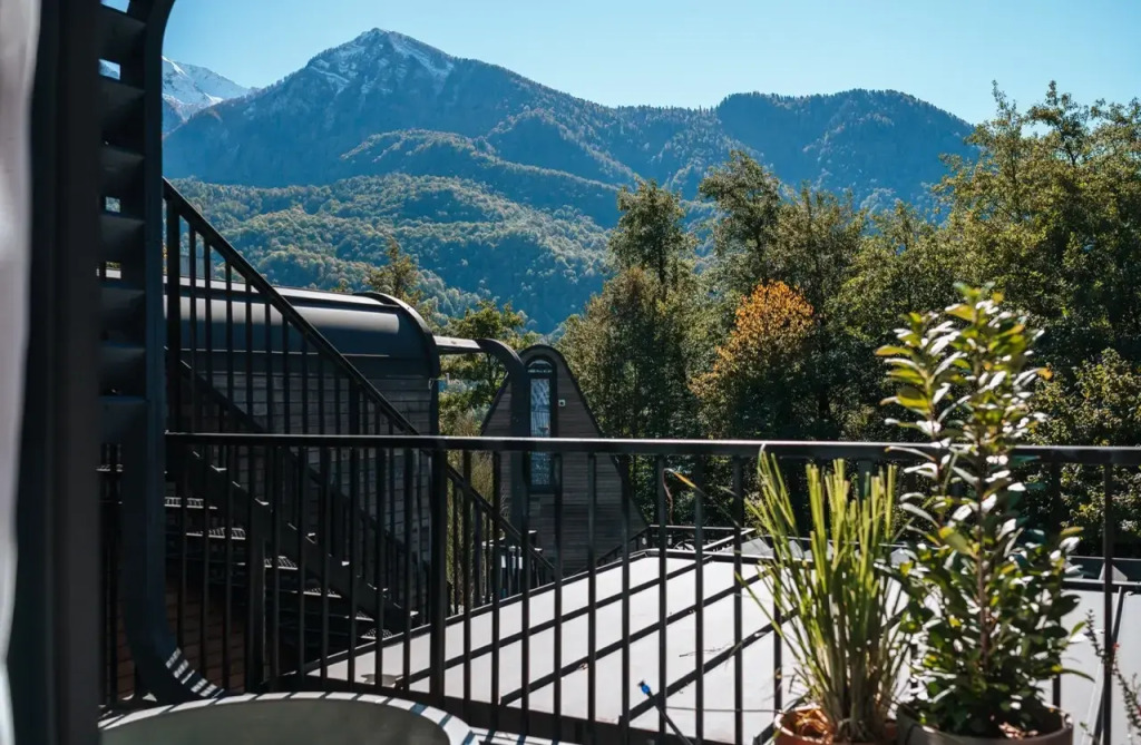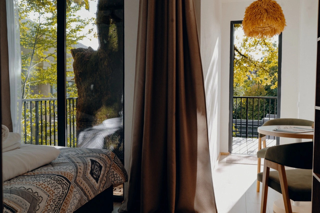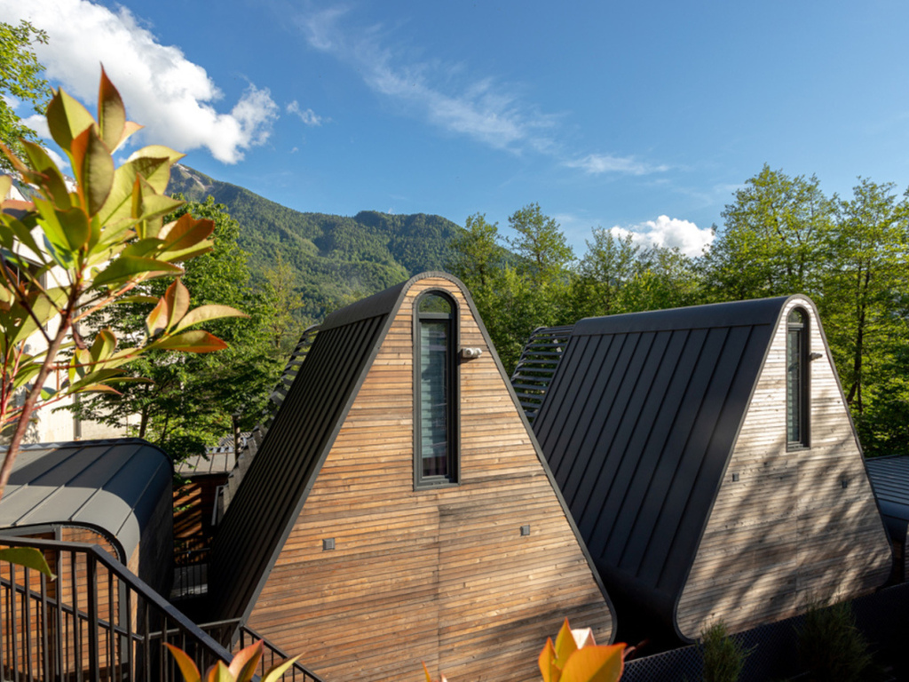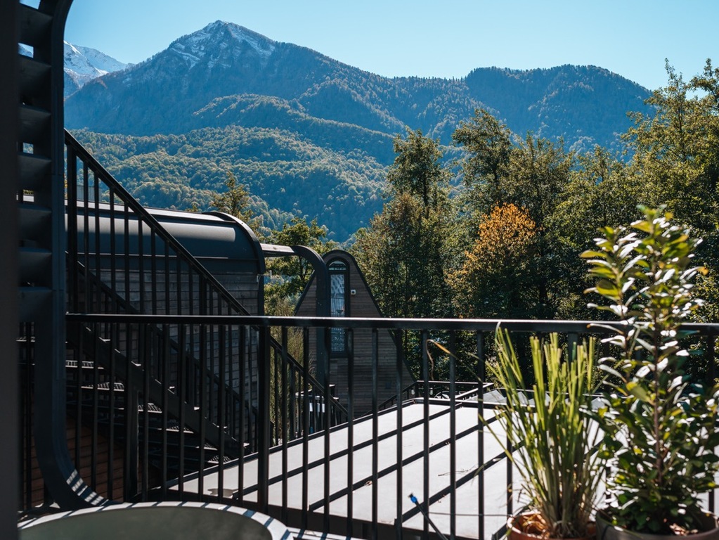 Расположение отеля уникально: центр Красной Поляны и шаговая доступность ко всем туристическим локациям, вкупе с полным уединением и тишиной. Отель расположен у горного ручья, окружен большим количеством зеленых растений и из домов открываются невероятные виды на горные вершины.