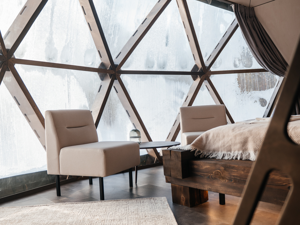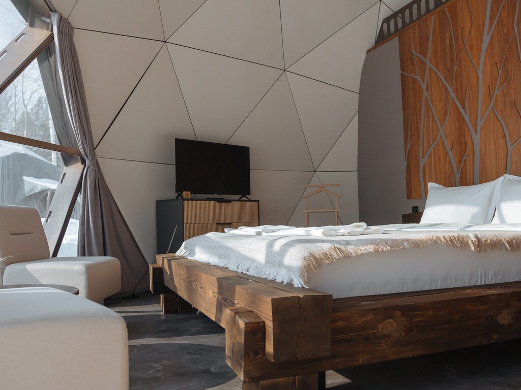 Проживание в "Lucky Glamping" - это не просто отдых вне городской суеты, а настоящее приключение, исполненное комфорта и роскоши. Купольные дома-сферы и зеркальные домики с панорамными окнами, расположенные среди живописного леса, предлагают абсолютную гармонию с окружающей природой. ~ 10 купольных домиков площадью от 33 м2 до 53 м2 и 5 зеркальных домиков площадью 21 м2 оснащены всем необходимым для комфортного проживания: кровати с ортопедическими матрасами, удобная мебель и хорошо оборудованные ванные комнаты. Каждая сфера имеет террасу, оборудованную мебелью и мангальной зоной;