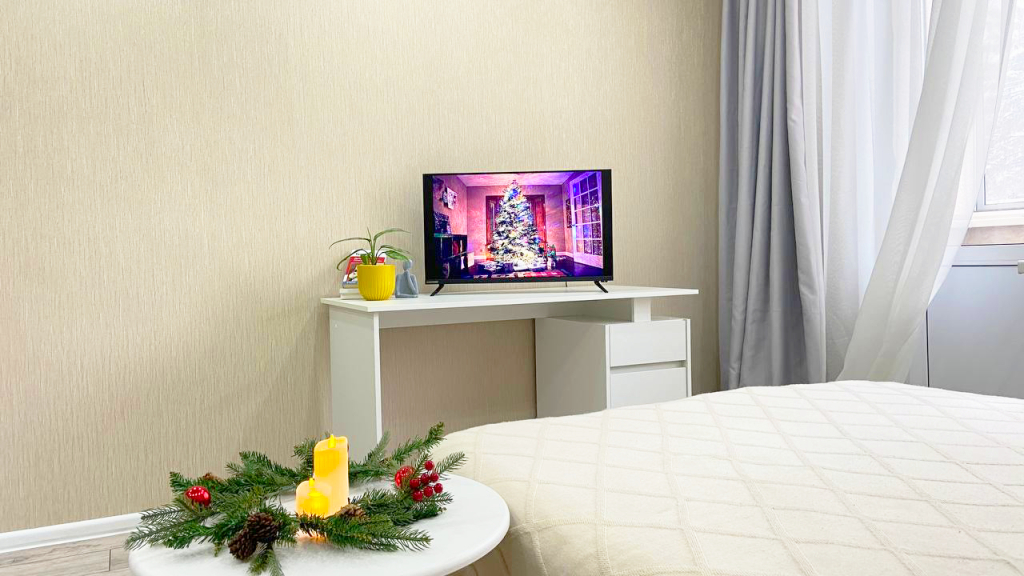 В апартаментах гости найдут постельное бельё и полотенца, набор посуды и столовых принадлежностей, кровать с ортопедическим матрасом 140 см х 200 см, два кресла-кровати 85 см х 190 см, стиральную машину, холодильник, электроплиту, микроволновую печь, телевизор, Wi-Fi, а также кофе, чай, сахар, растительное масло, специи.