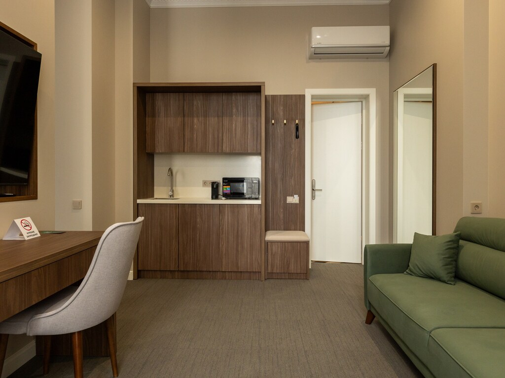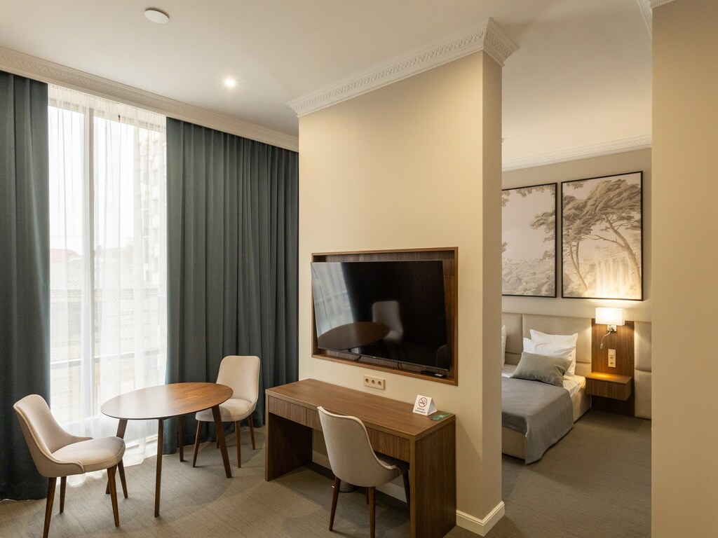 Отель предлагает гостям 5 просторных номеров категорий Люкс и Делюкс, обставленных с использованием современных материалов и технологий, что создаёт атмосферу тепла и уюта. Номера оснащены кондиционерами, телевизорами с функцией Smart TV и всем необходимым для приятного пребывания.