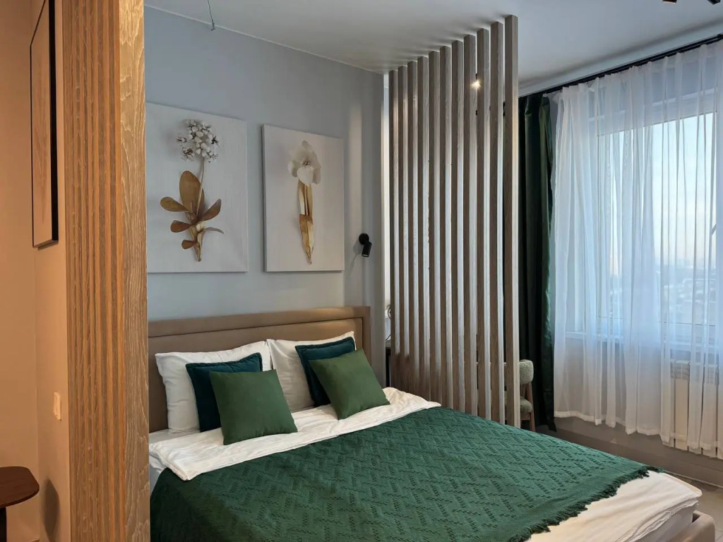 Апартаменты располагаются в жилом комплексе с круглосуточной охраной, бесплатной парковкой и собственным кафе на первом этаже здания.