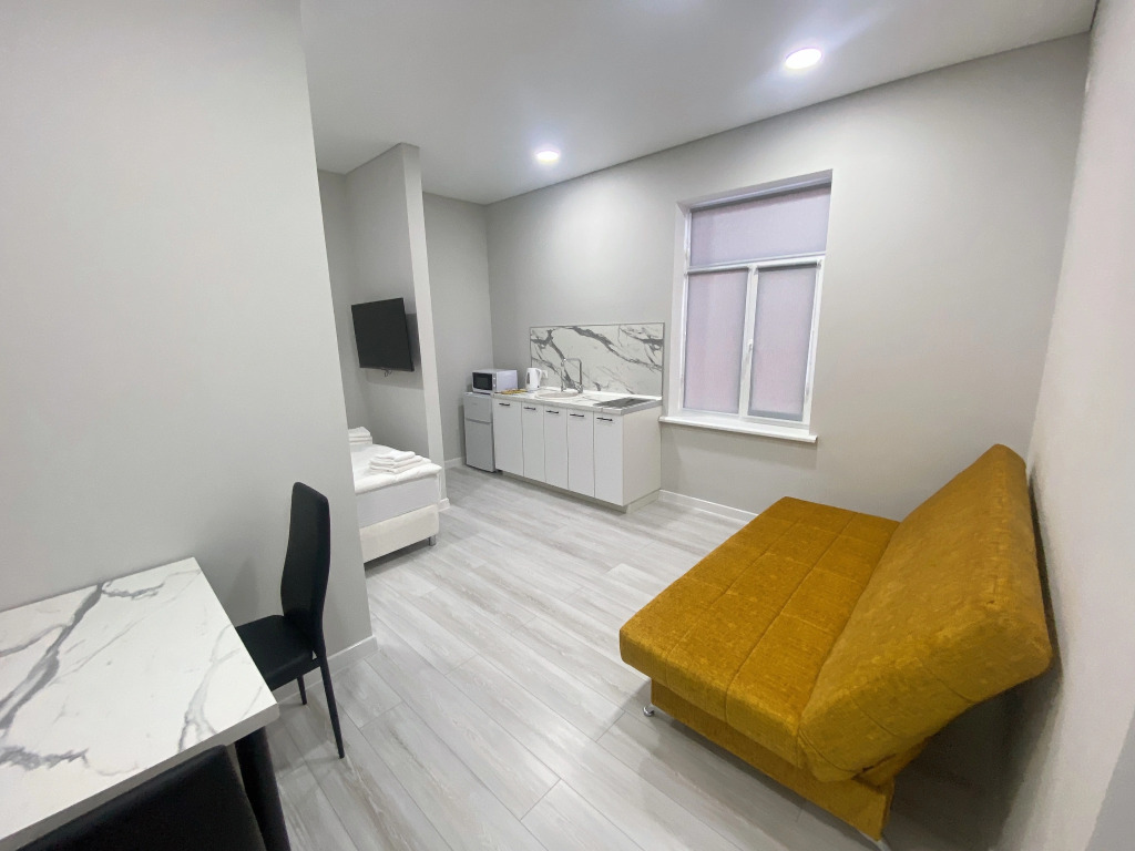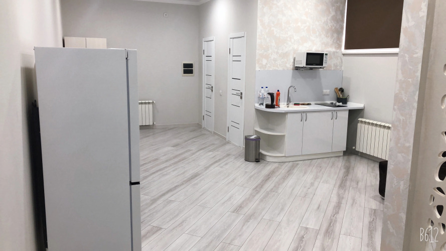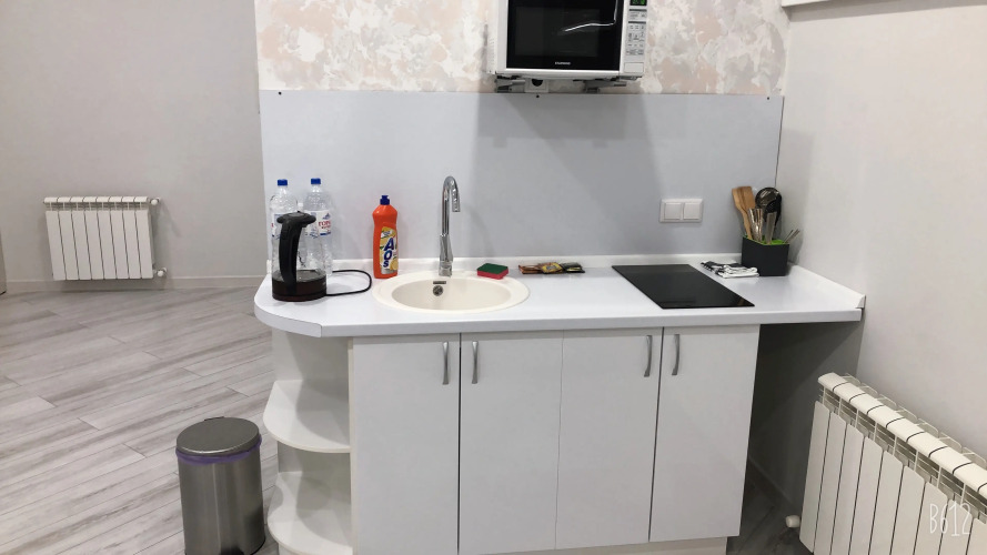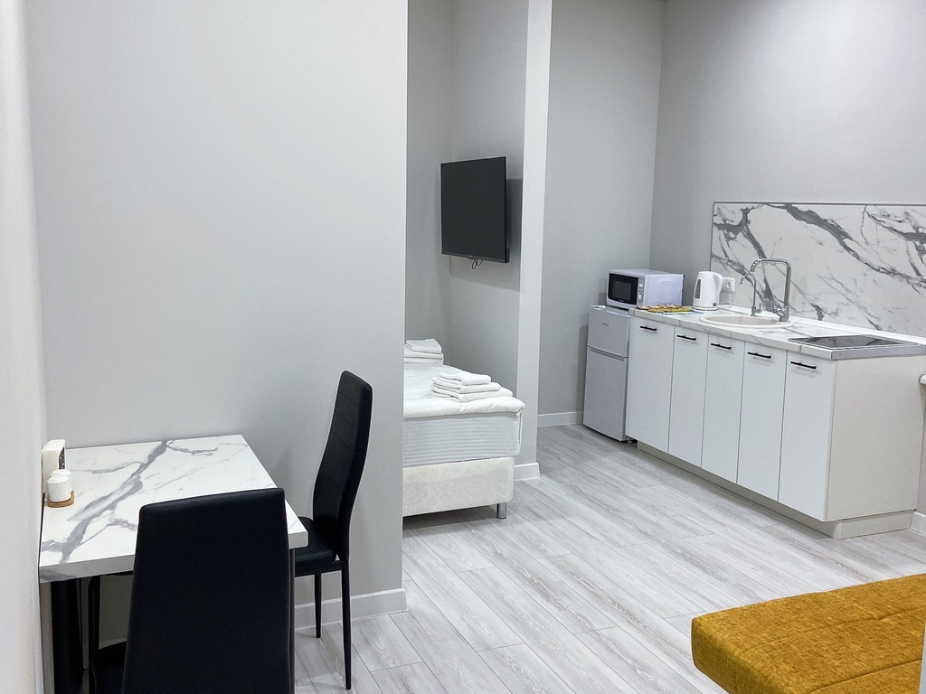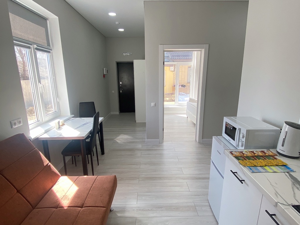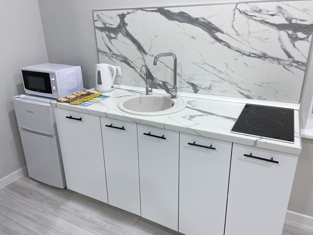 В каждом номере есть оборудованная кухня с холодильником, варочной плитой, микроволновкой и тд.