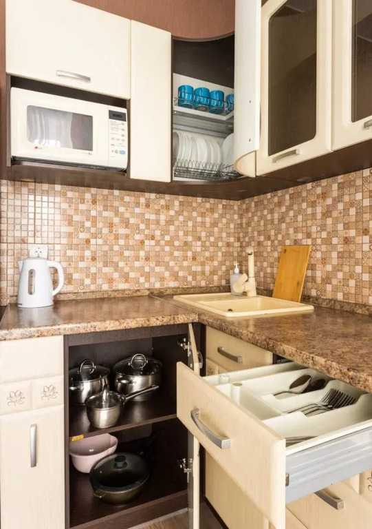 В апартаментах есть — необходимые техника и мебель, гладильная доска, сушилка, утюг, фен, Wi-Fi до 150 Мбит/с, кабельное ТВ.