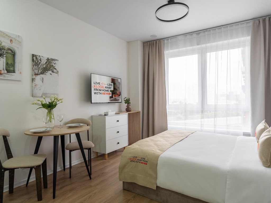 Добро пожаловать в студию KeyGo #1028 — ваше комфортное жильё с продуманной планировкой в идеальном расположении от центра.