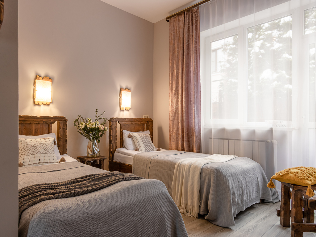 Отель Номера в Стрельне — это уютное и комфортабельное место для отдыха и деловых поездок. В отеле представлены 17 двухместных номеров: с одной кроватью или двумя раздельными кроватями, что обеспечивает гибкость и комфорт для гостей. На всей территории действует бесплатный Wi-Fi, позволяющий оставаться на связи и работать без перебоев.